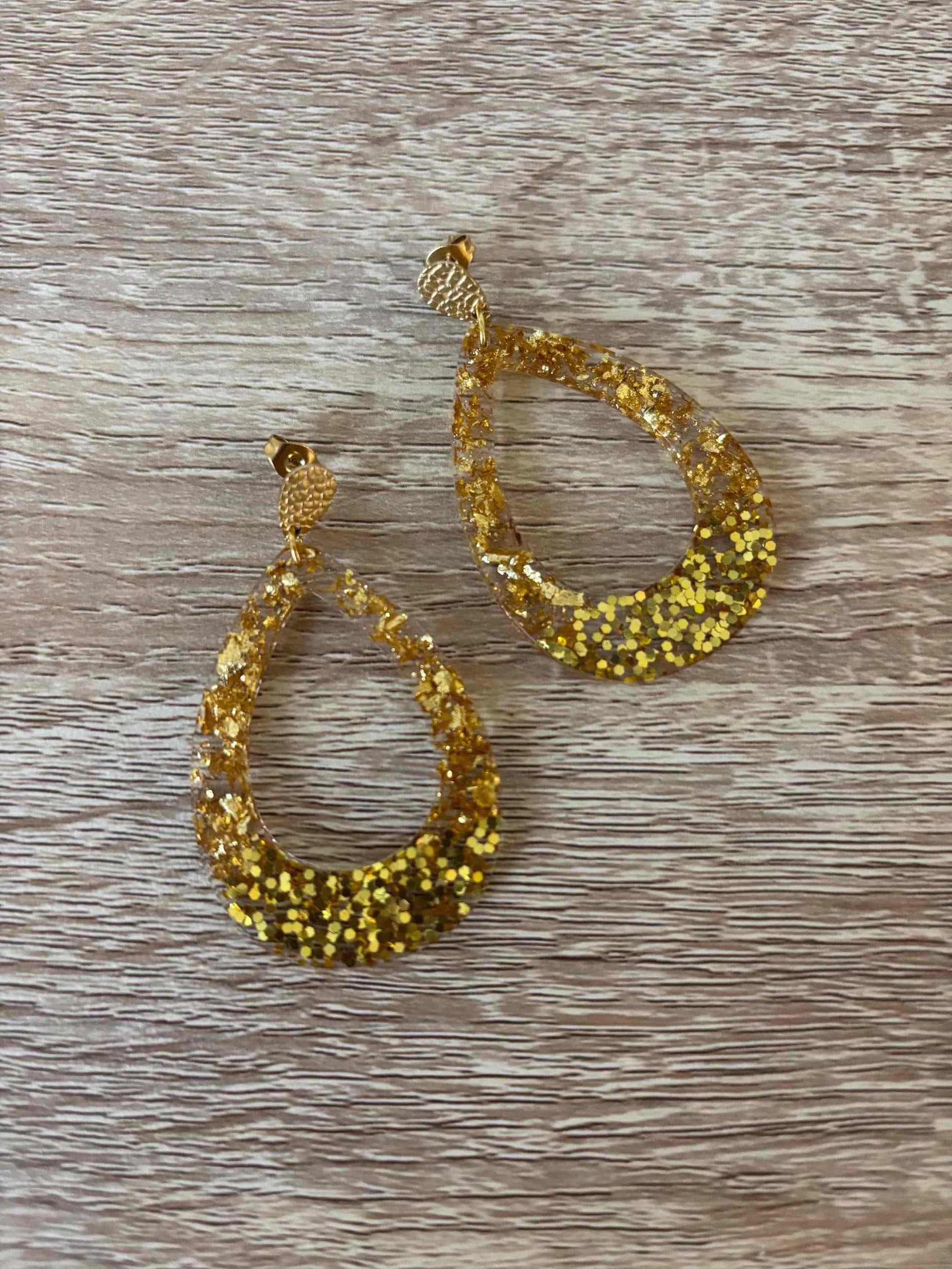 Boucle goute vide doré paillettes