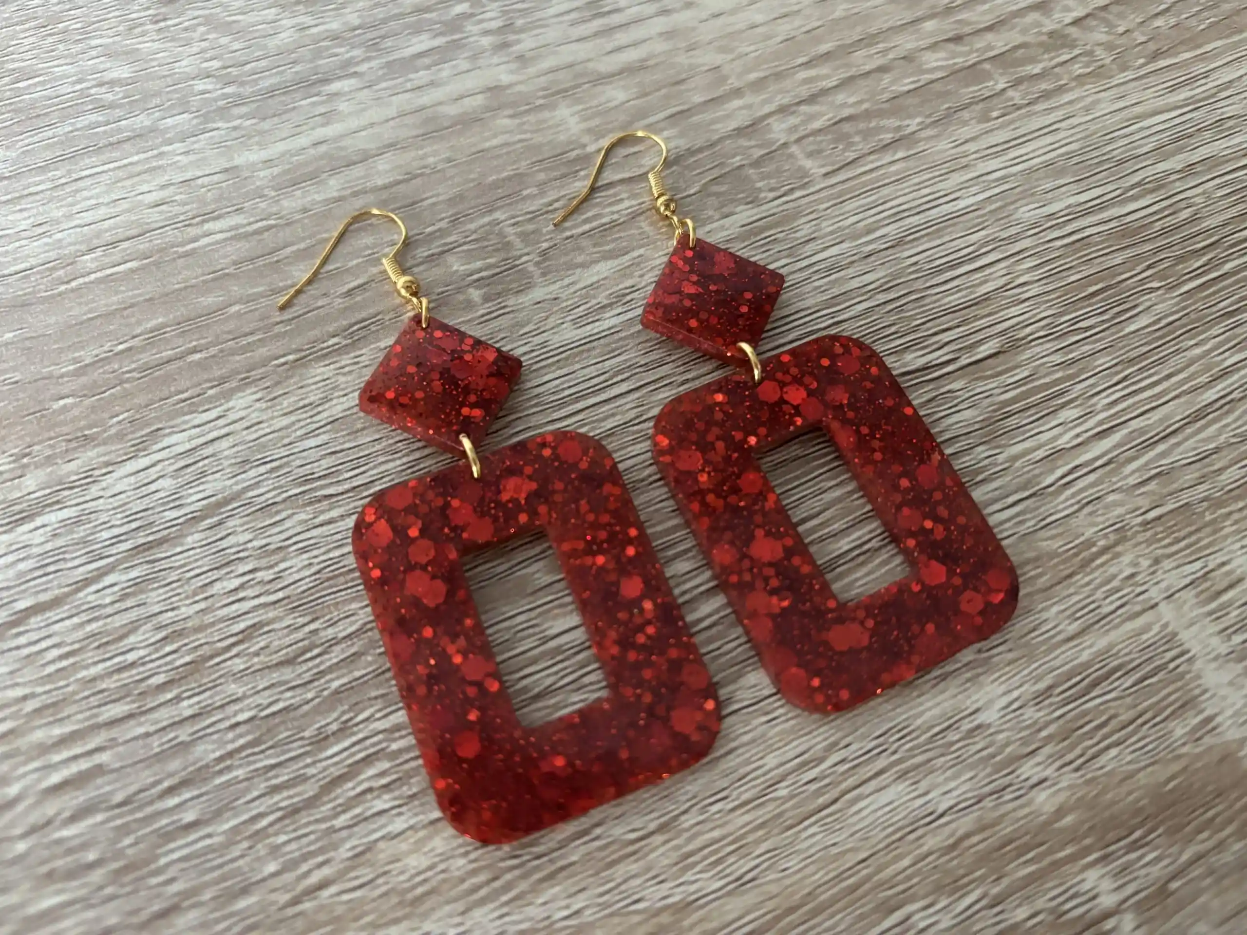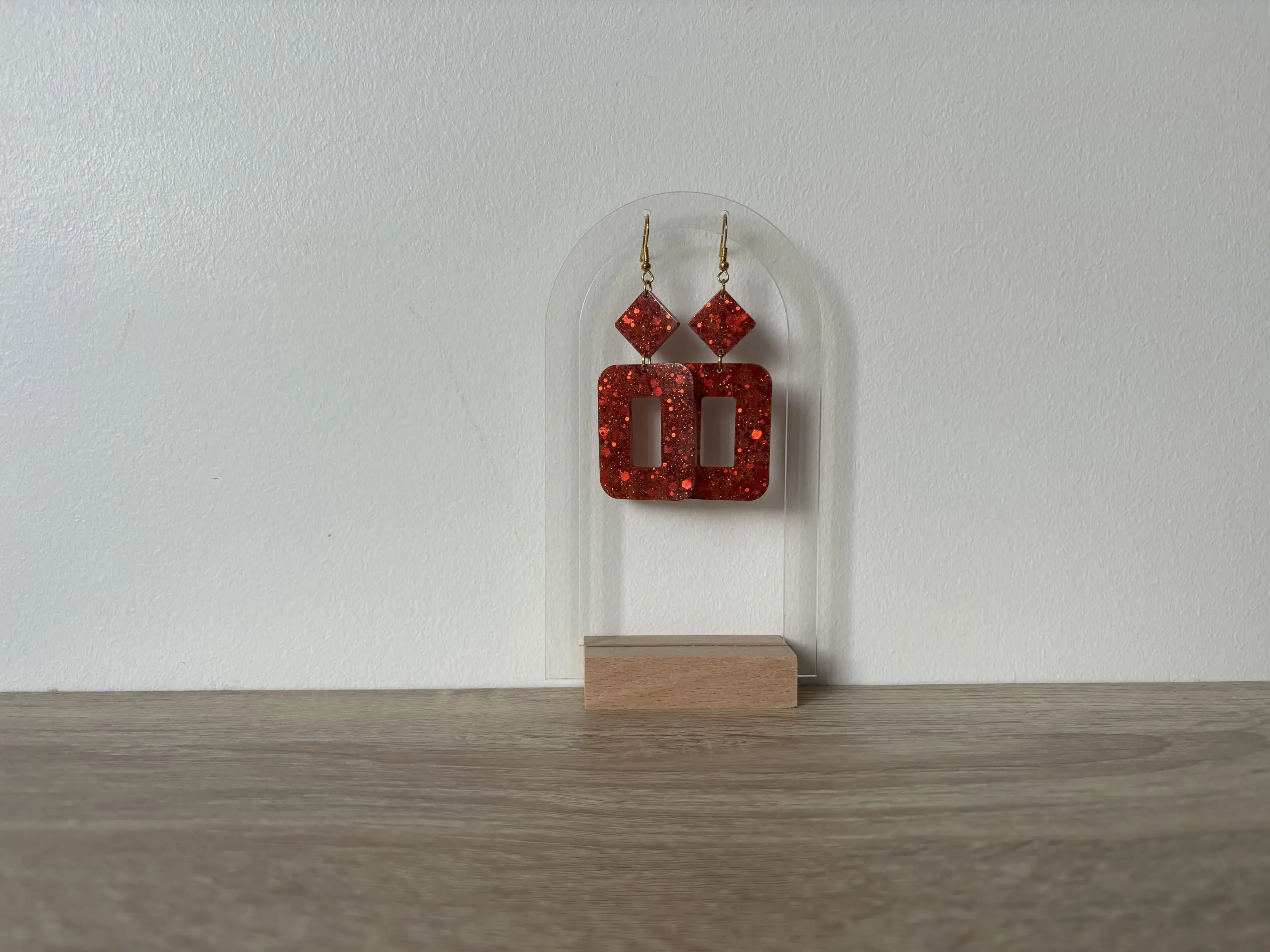 Accueil / Bijoux et accessoires / Boucles d'oreilles / Boucles d’oreilles carré rouge brillant