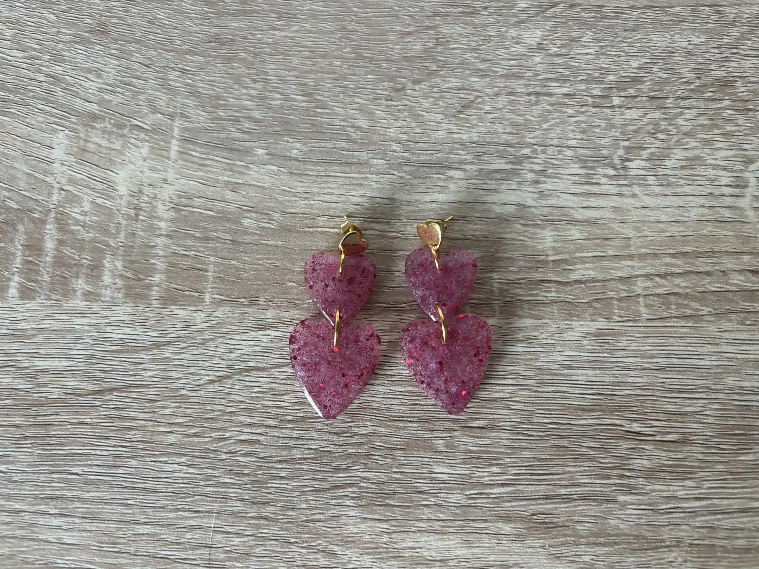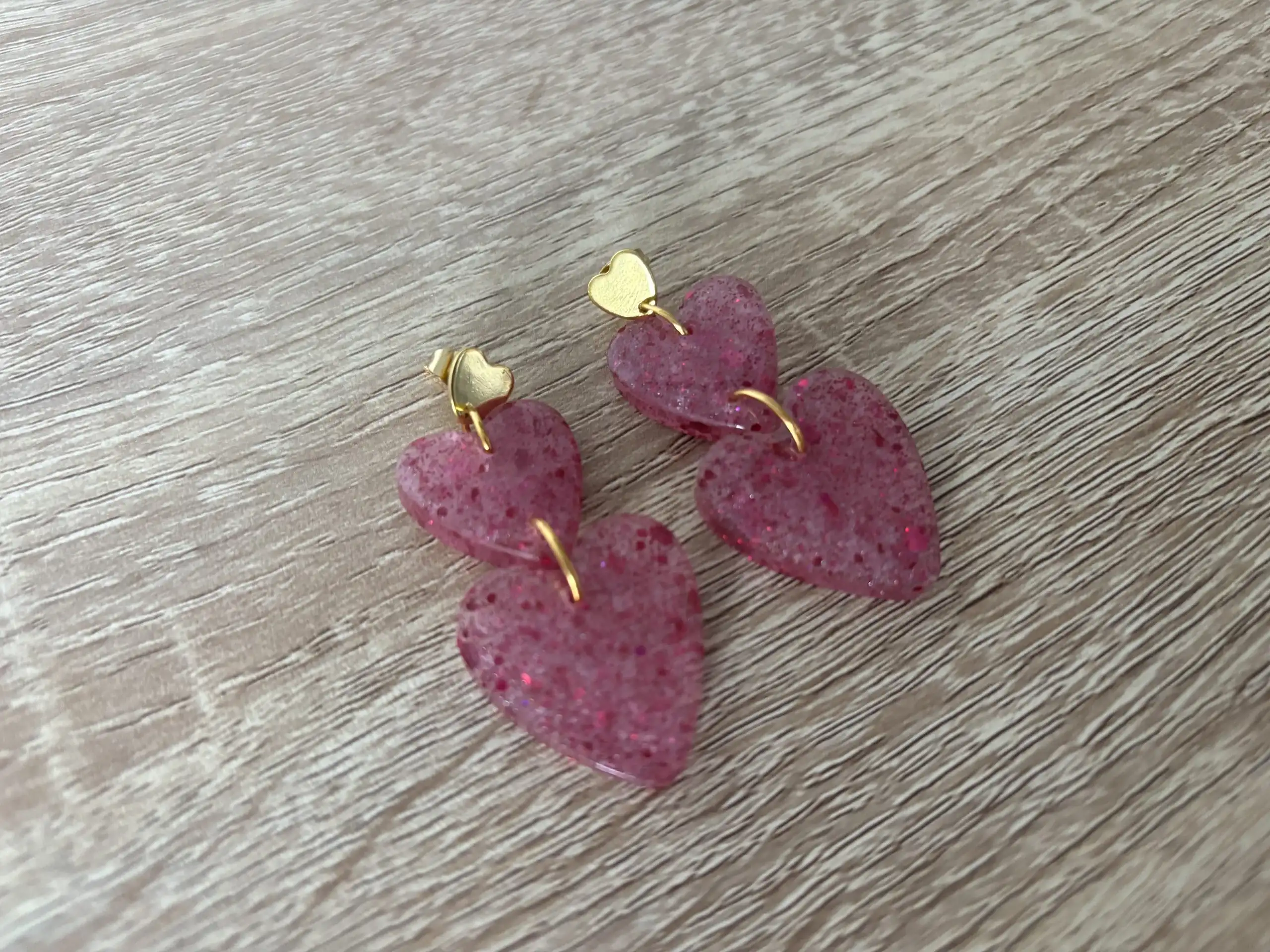 Accueil / Bijoux et accessoires / Boucles d'oreilles / Boucles d’oreilles double cœur rose