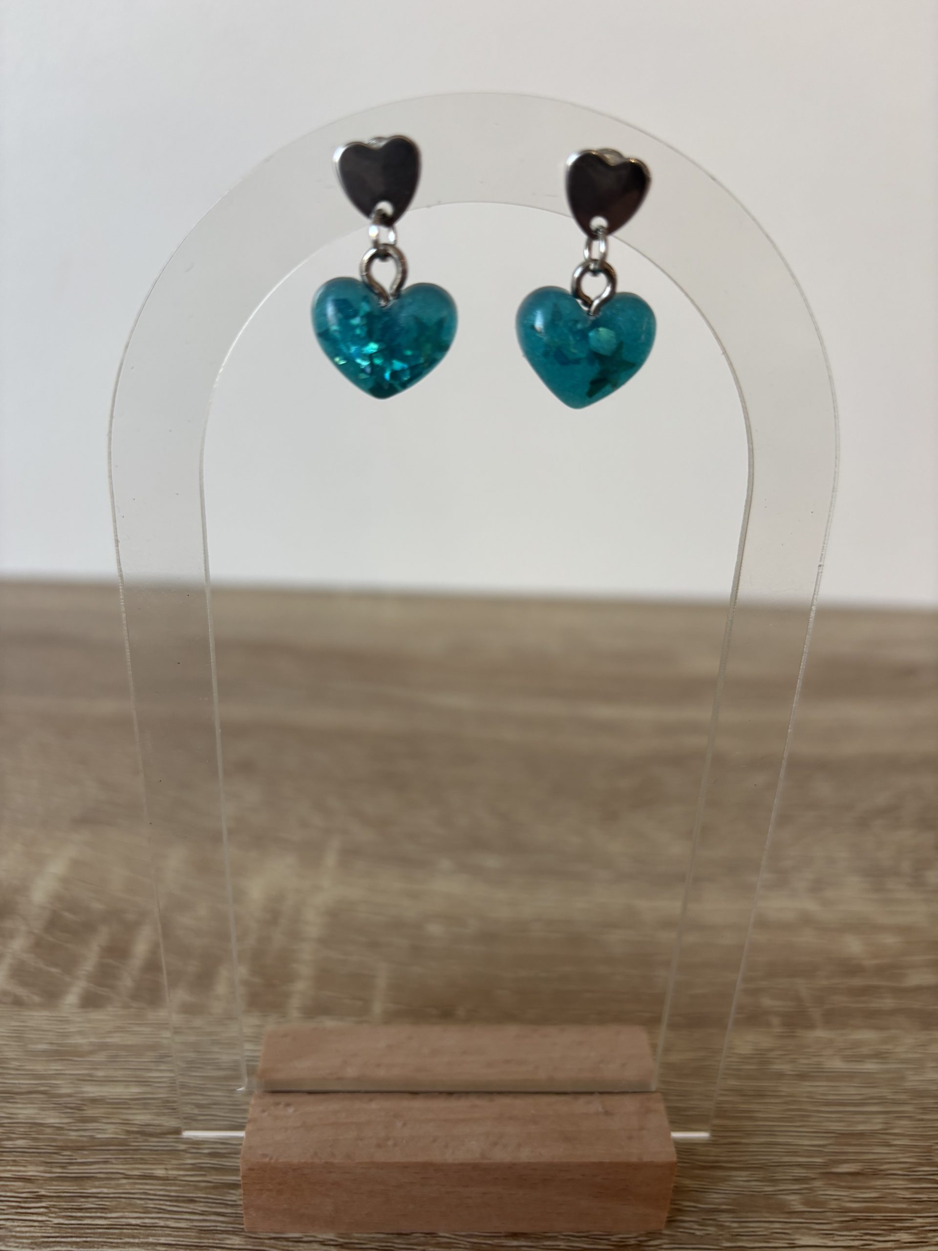 Boucles petit coeur turquoise