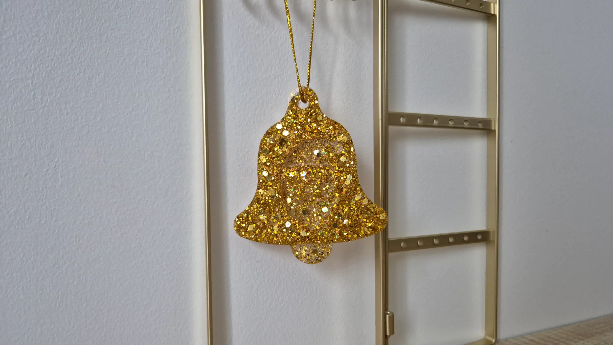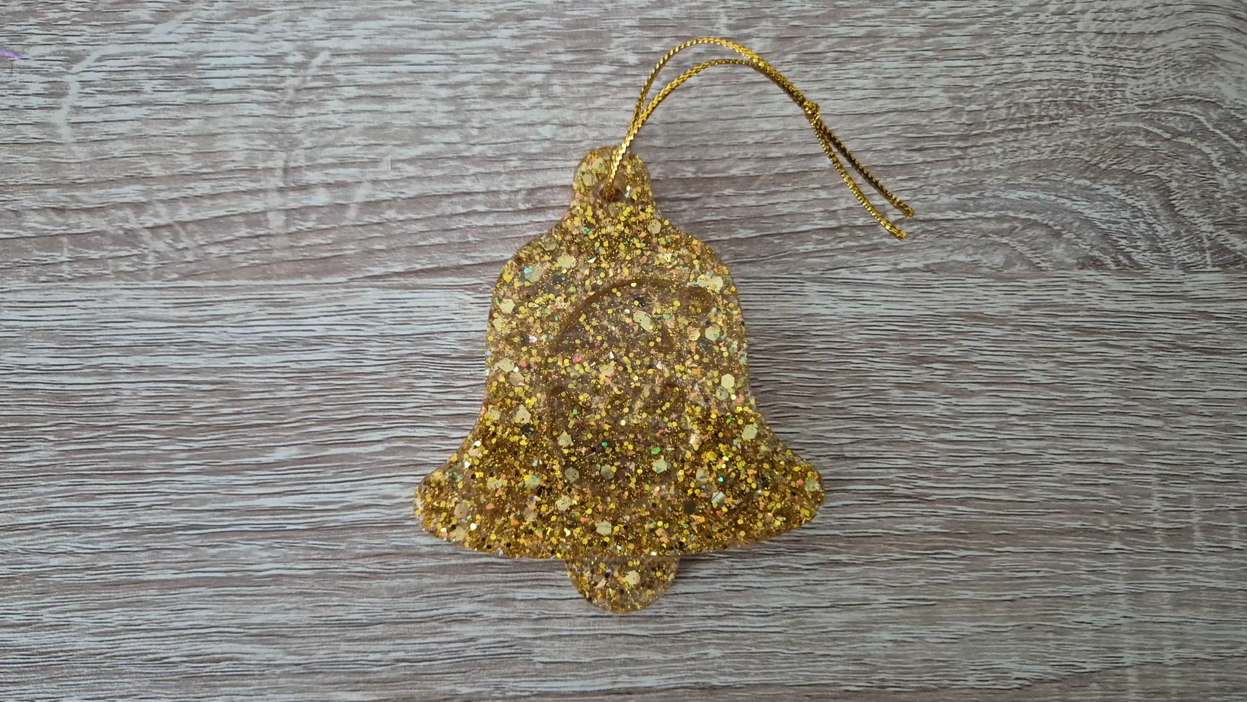 Accueil / Décorations / Décorations de Noël / Cloche Père Noël doré pailleté