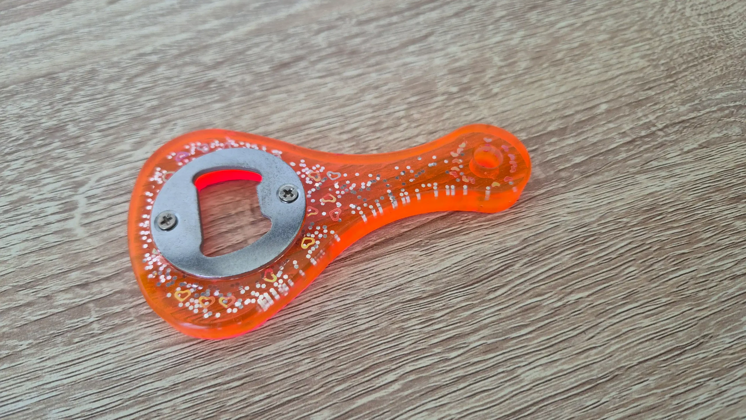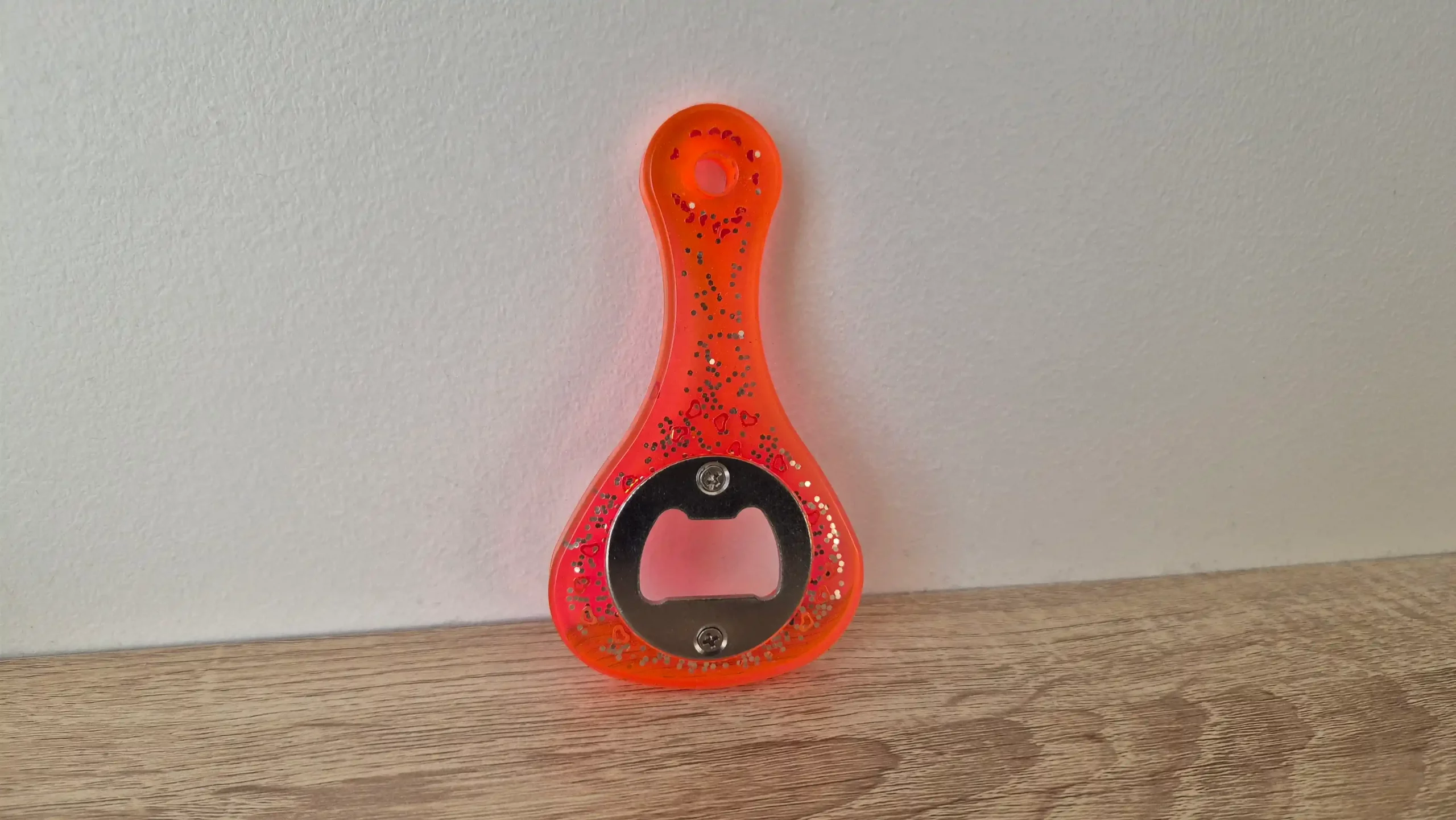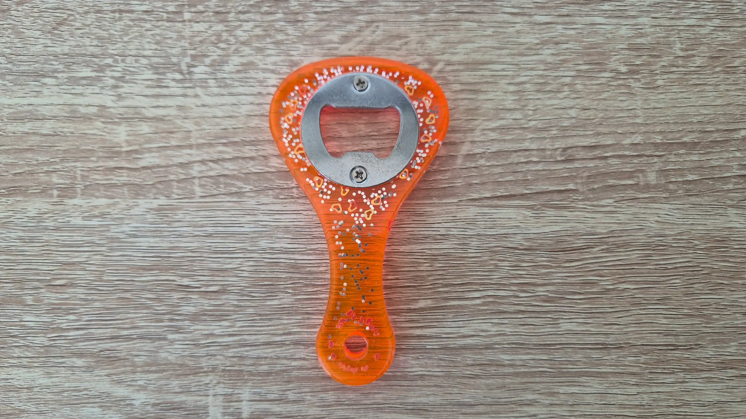 Accueil / Accessoires pour la maison / Décapsuleurs / Décapsuleur rose/orange à paillettes