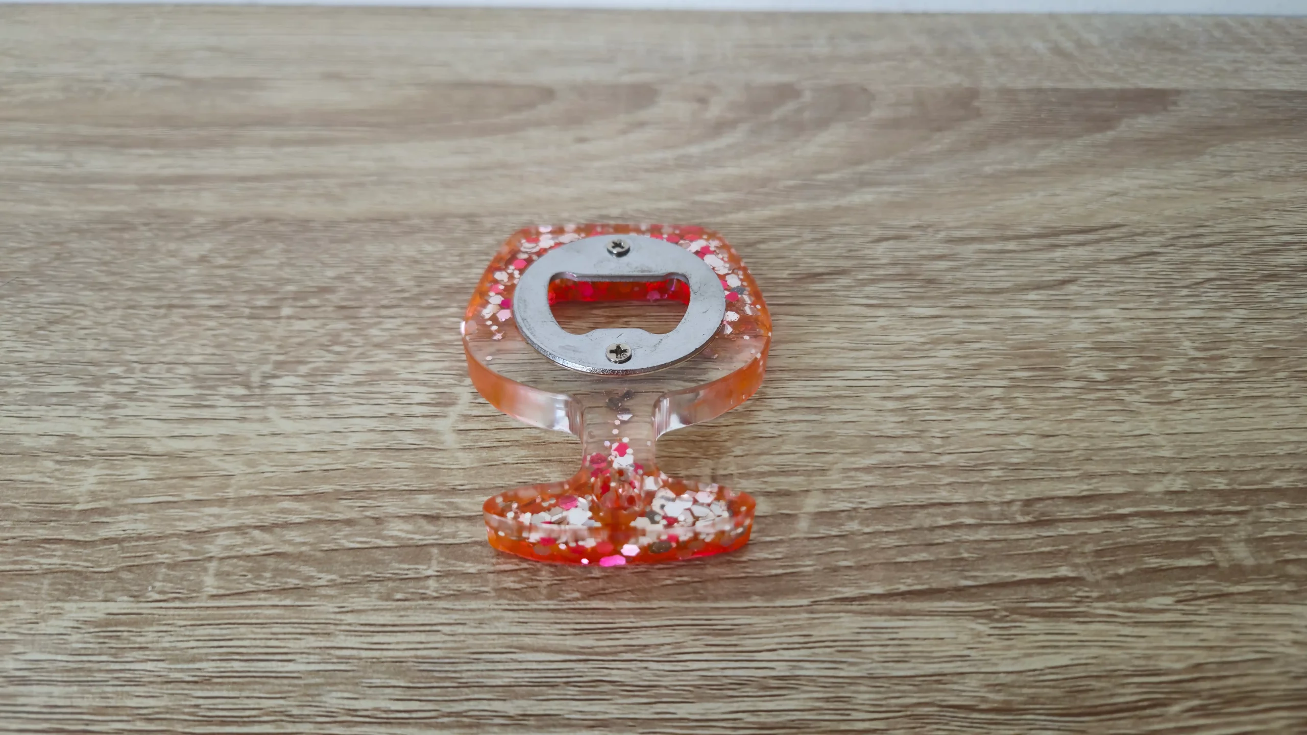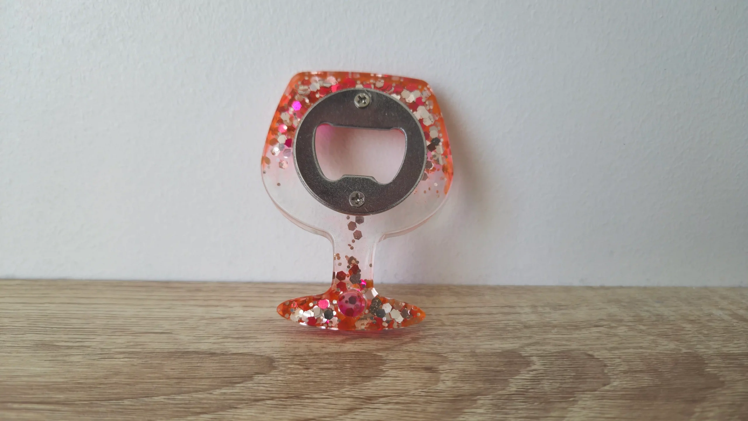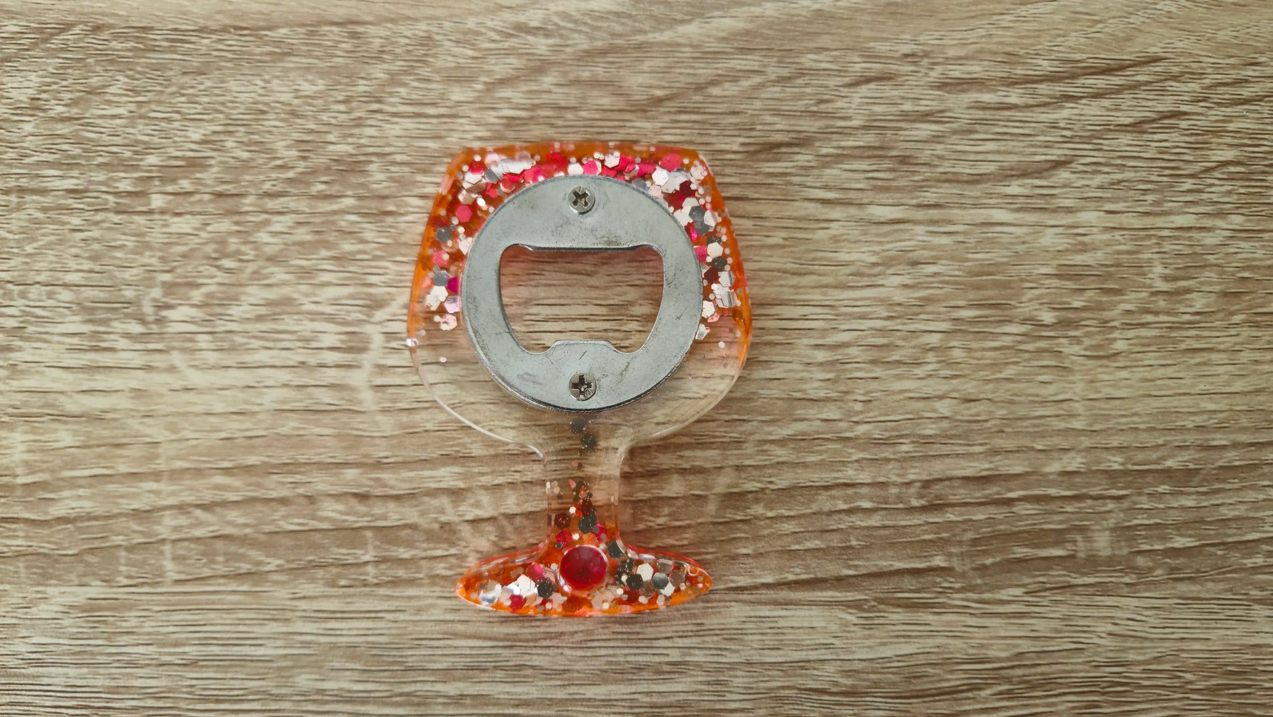 Accueil / Accessoires pour la maison / Décapsuleurs / Décapsuleur verre rose/orange pailleté