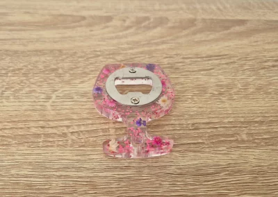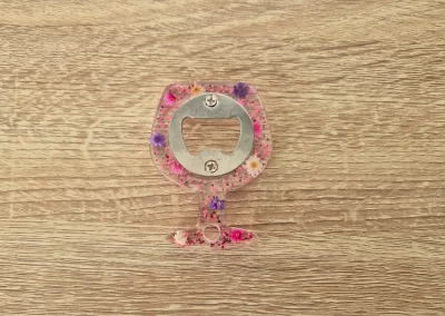Décapsuleur verre transparent fleuri
