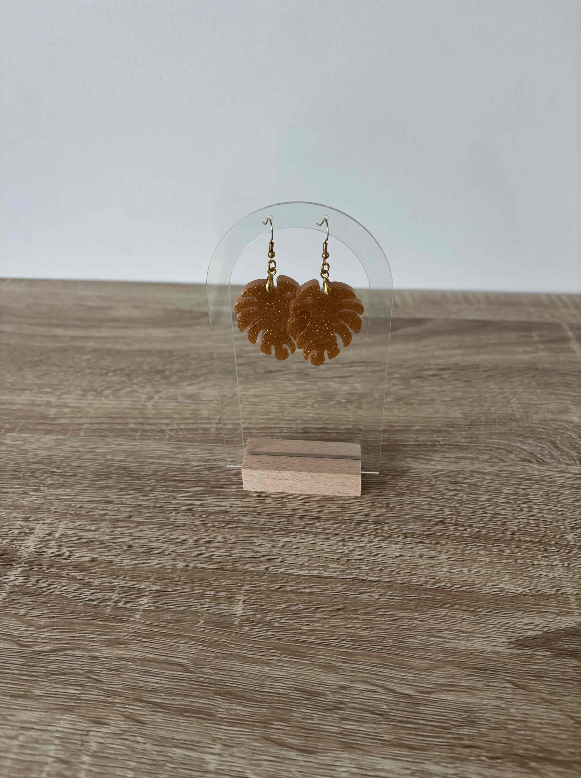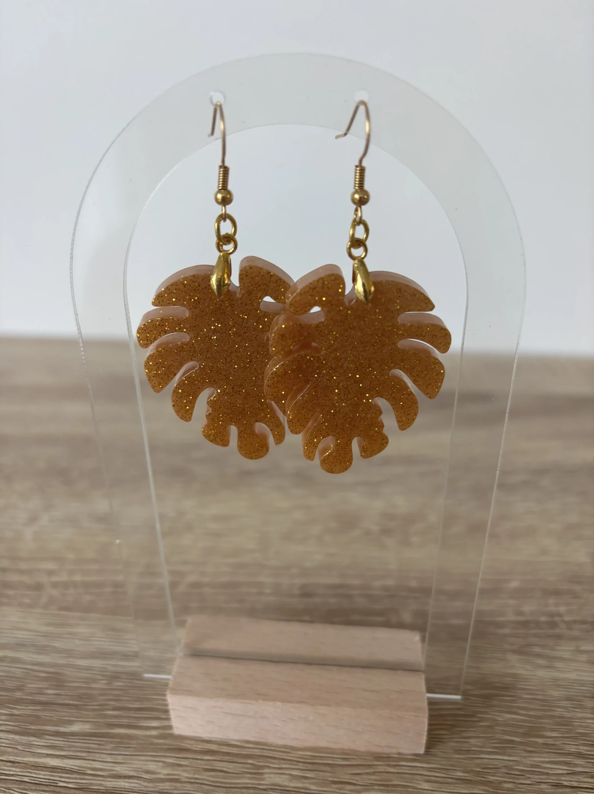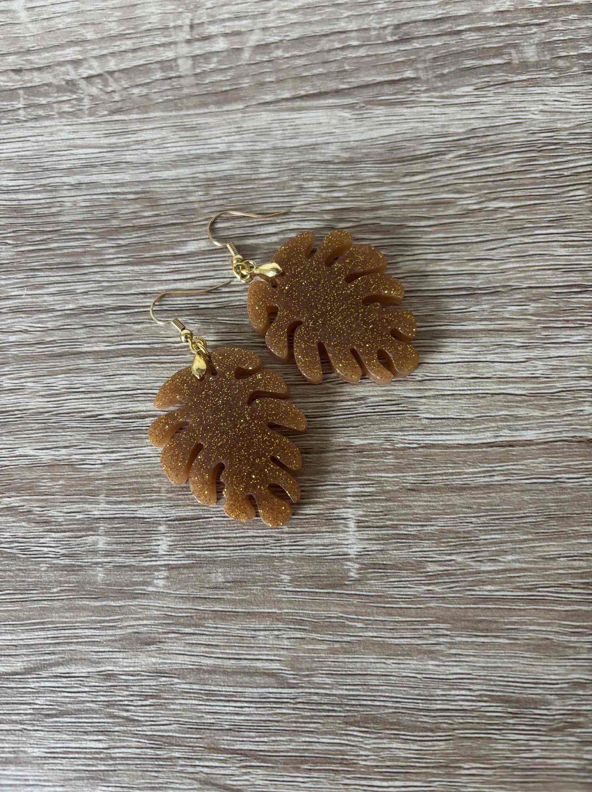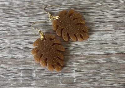 Boucles d’oreilles feuille doré pailletée
