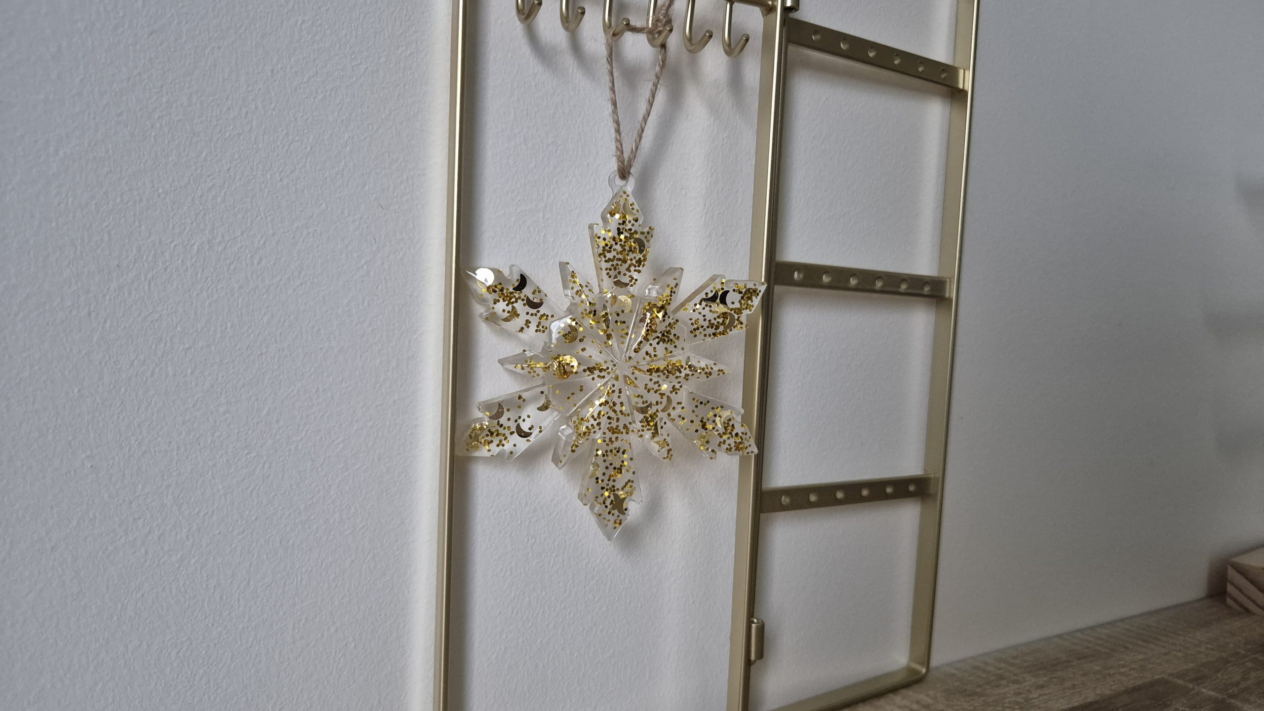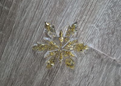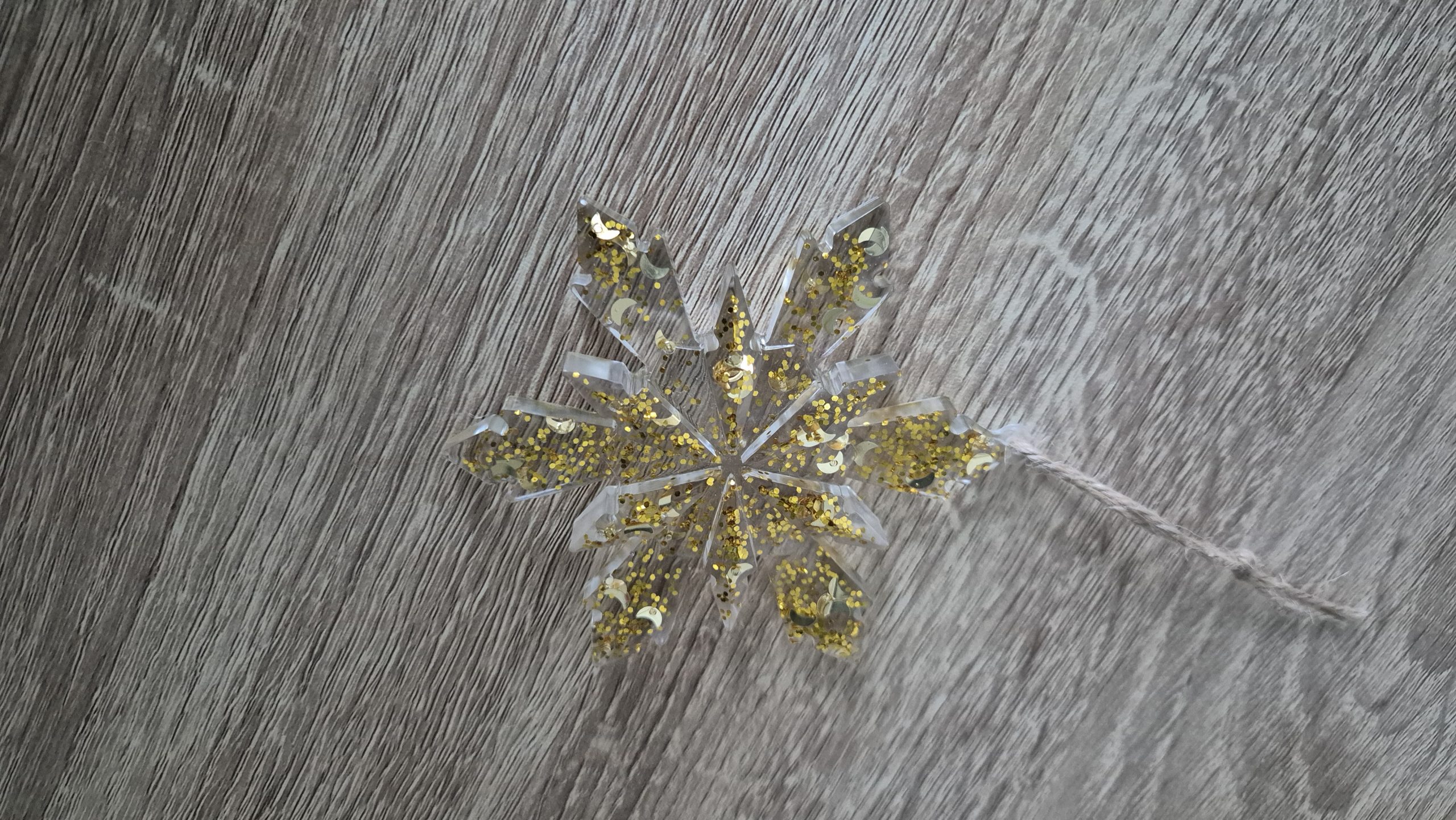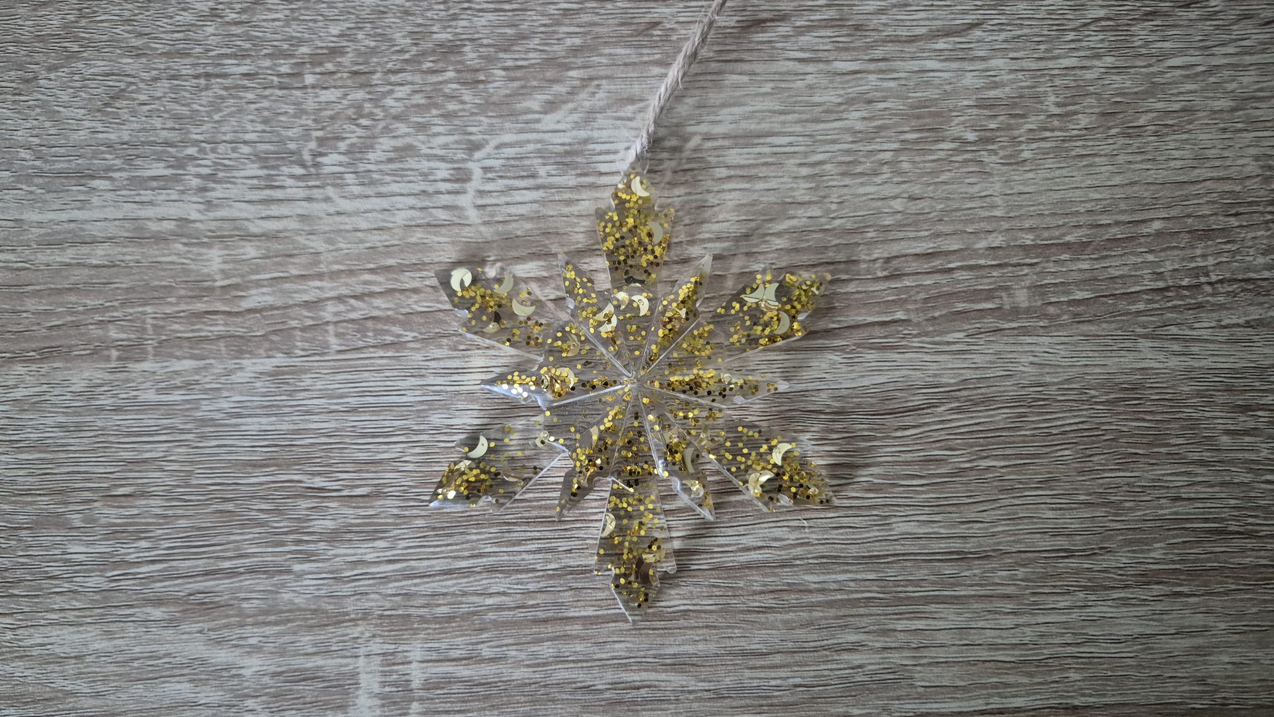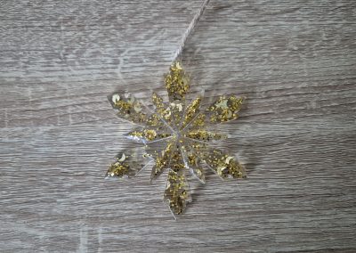 Accueil / Décorations / Décorations de Noël / Flocon transparent à paillettes dorées