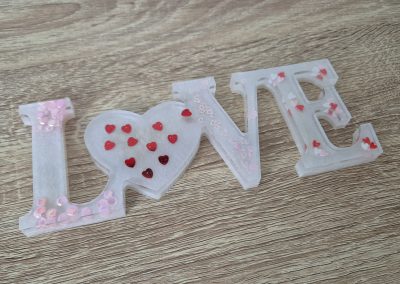 Accueil / Décorations / Love / Love blanc avec petits cœurs