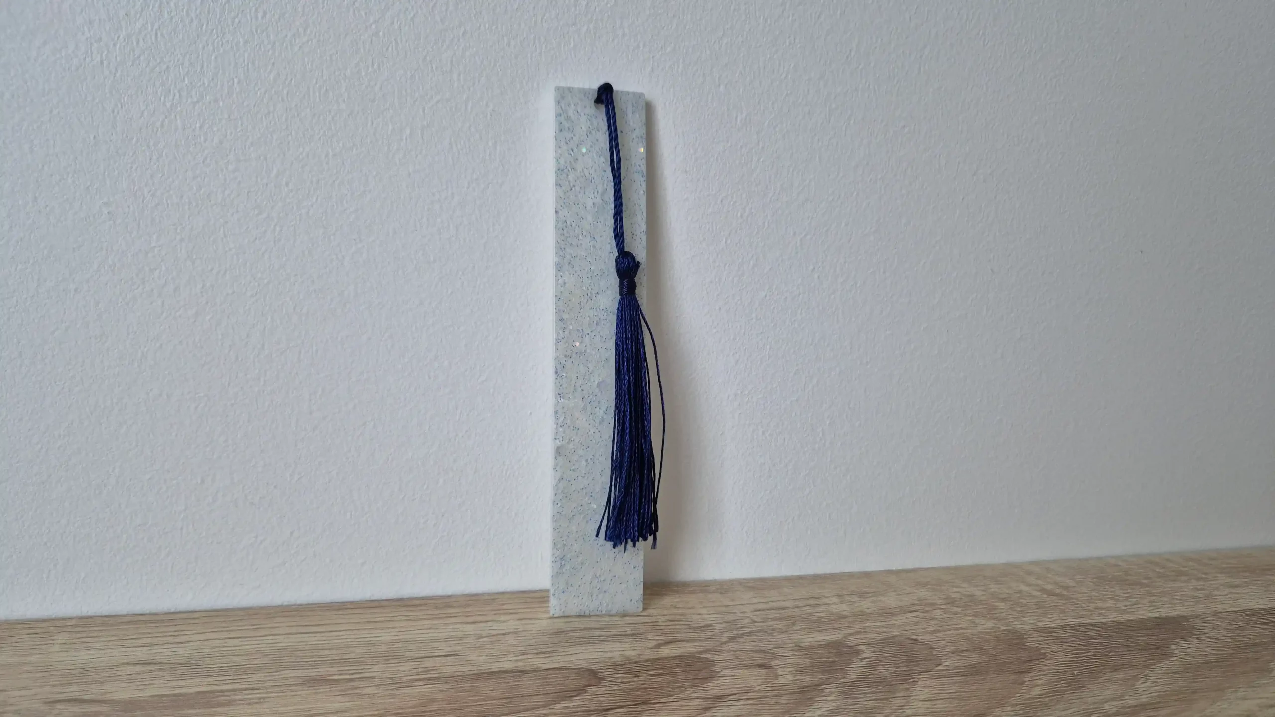 Accueil / Accessoires pour la maison / Marque-pages / Marque-pages blanc à paillettes bleues