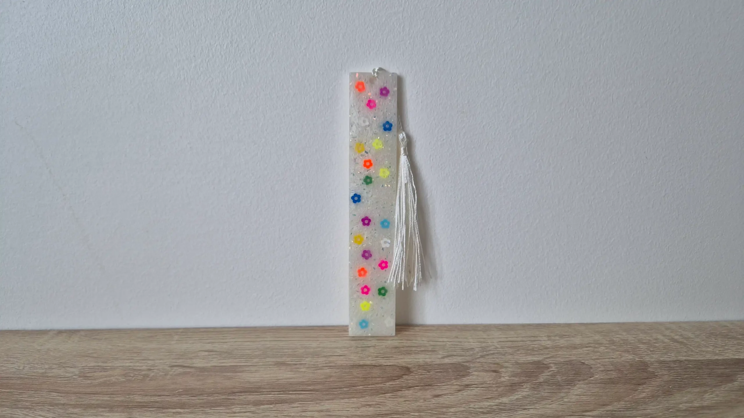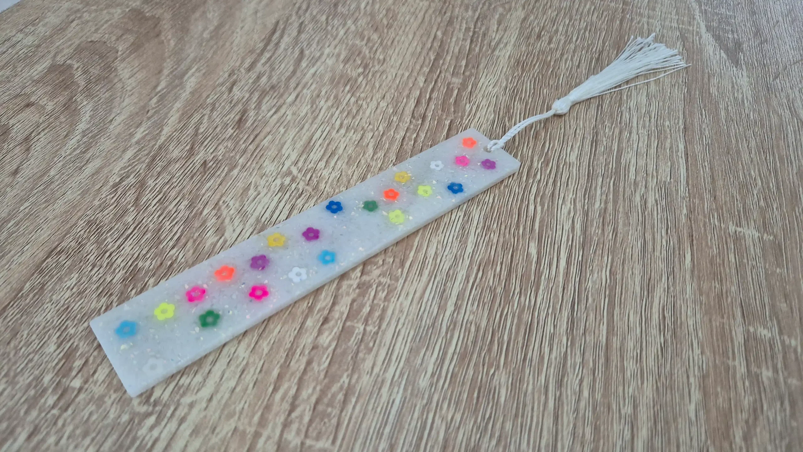• Marque-pages blanc à paillettes bleues