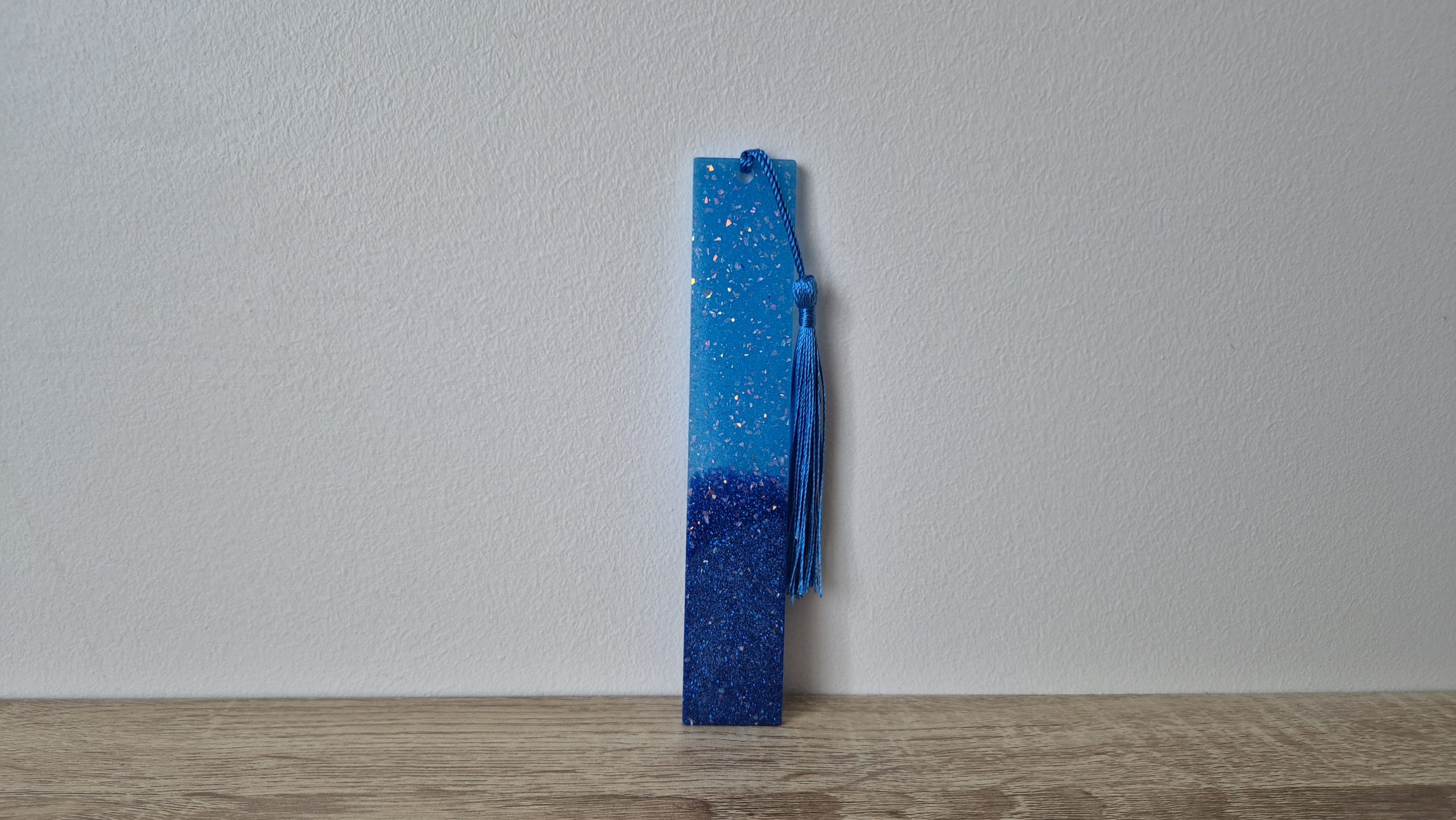 • Marque-pages bleu à pailettes