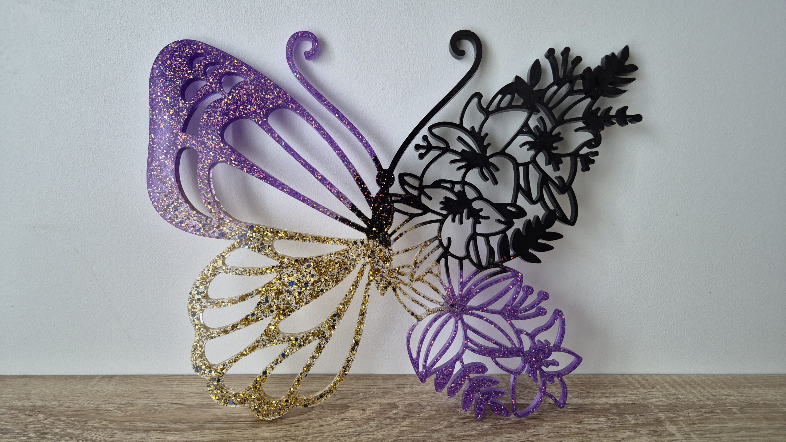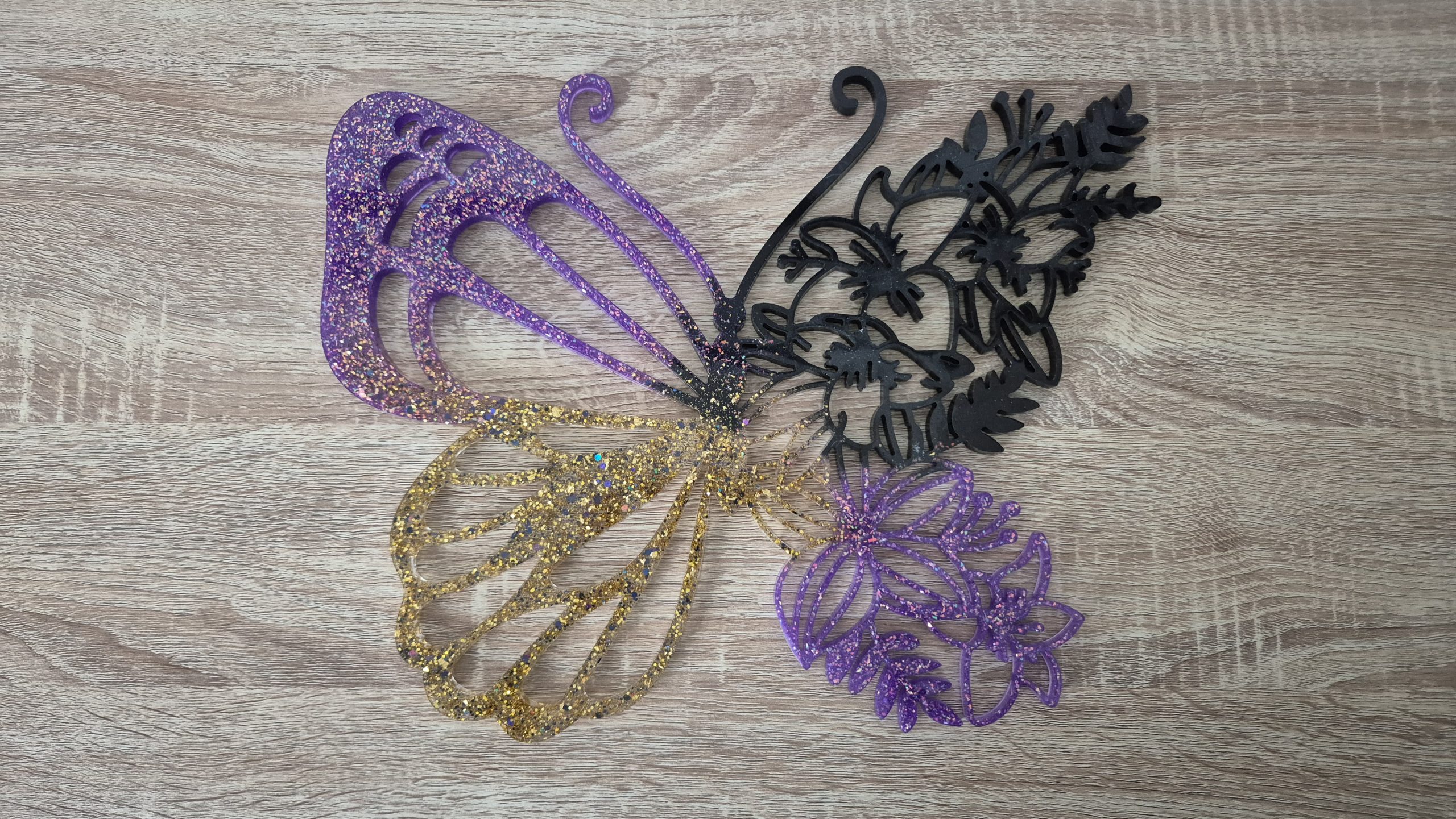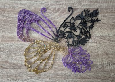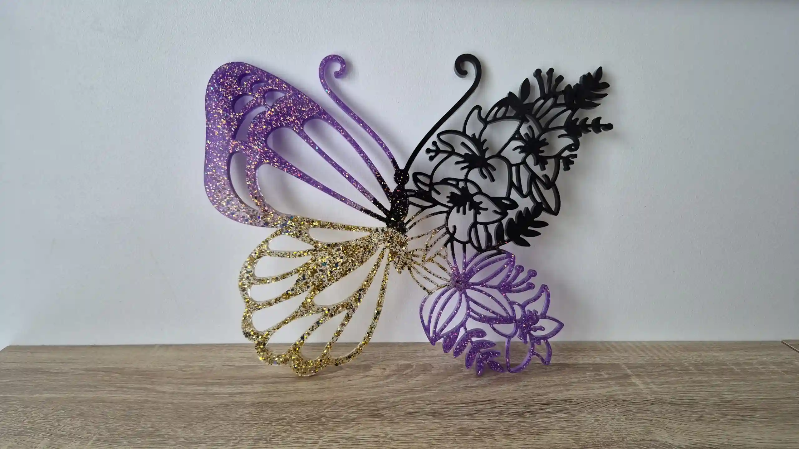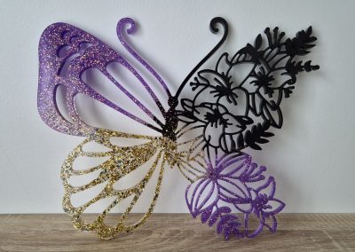 Accueil / Décorations / Papillons / Papillon violet, noir et doré