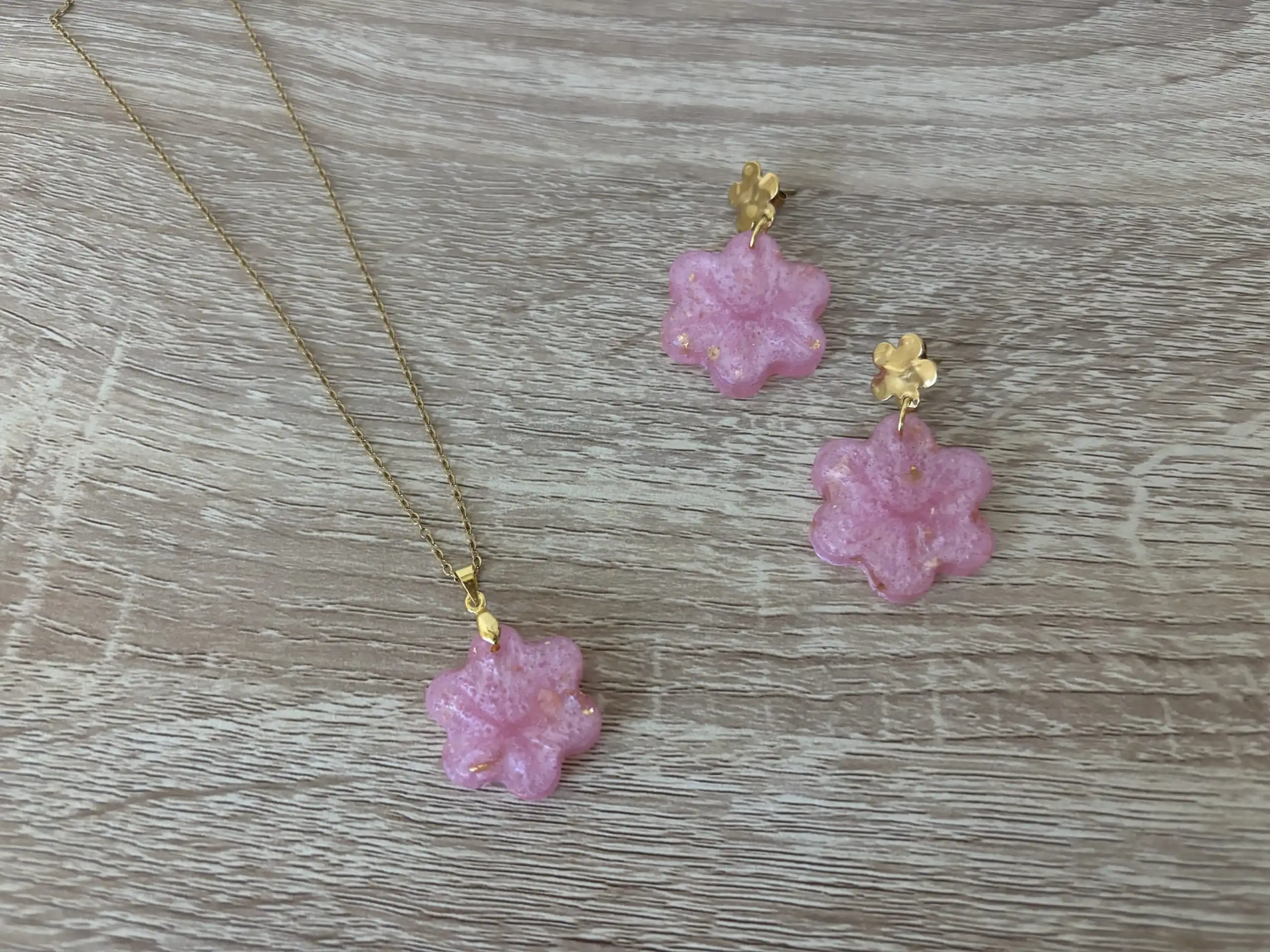 Accueil / Bijoux et accessoires / Parures / Parure fleur rose