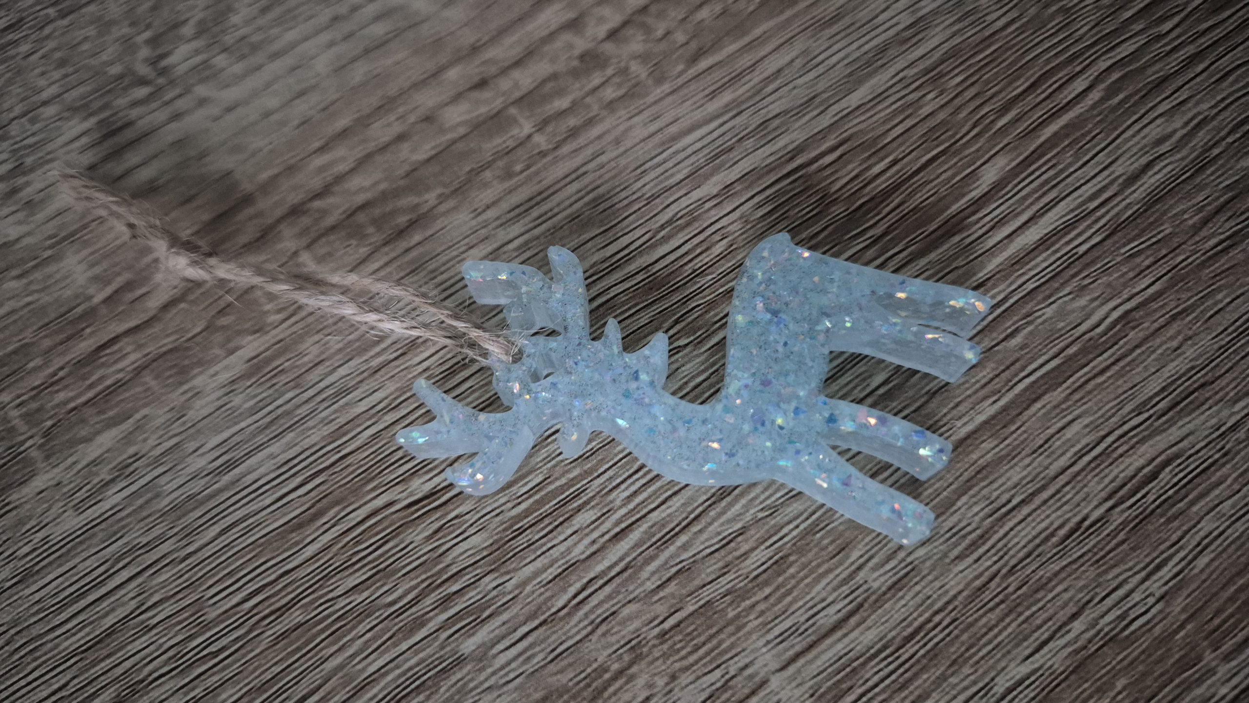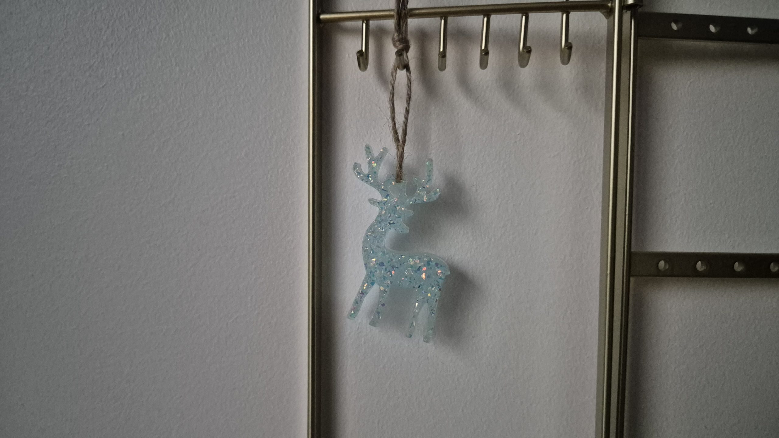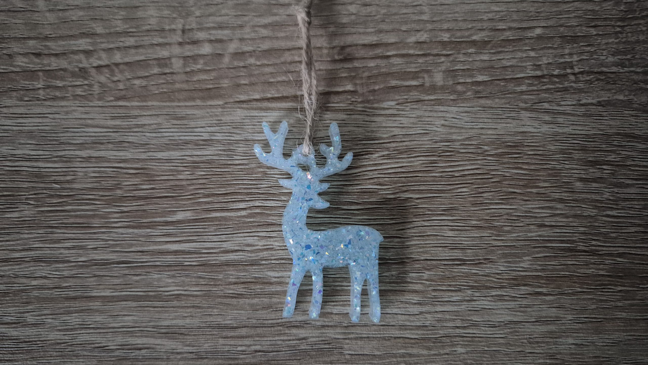 Accueil / Décorations / Décorations de Noël / Petit renne bleu à paillettes