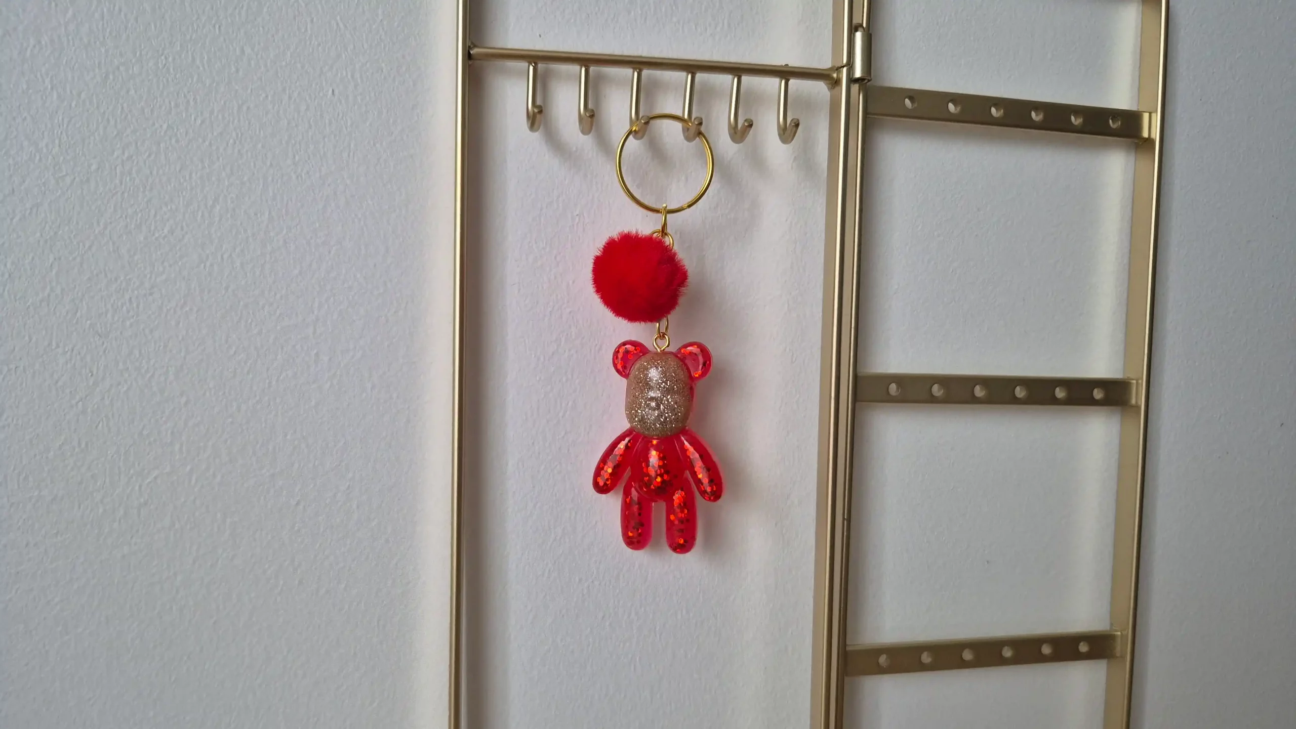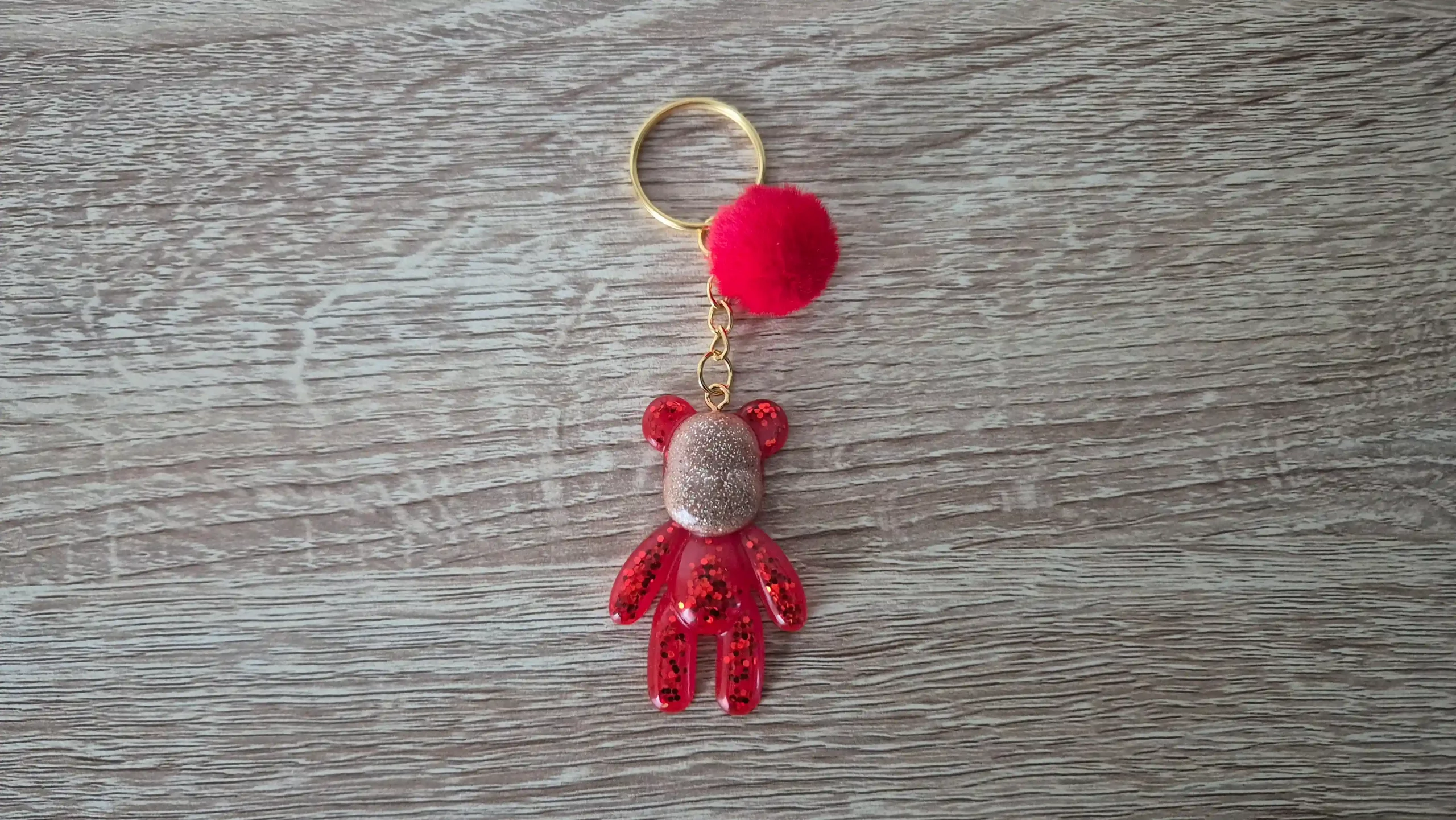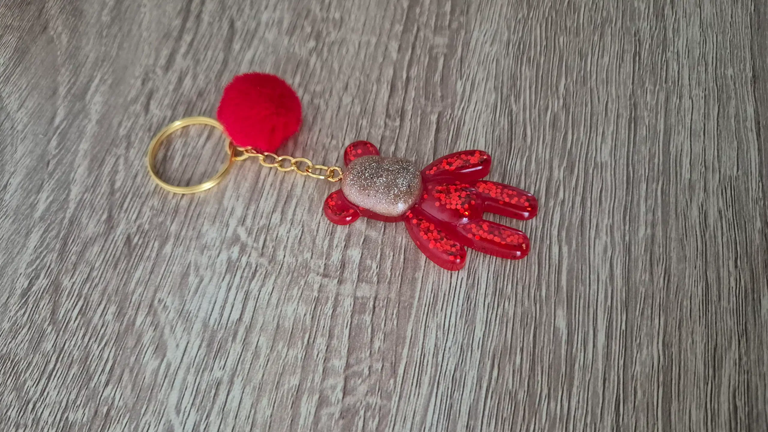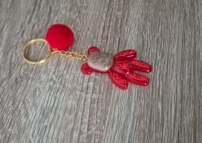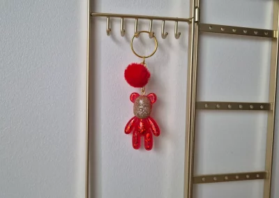 Accueil / Bijoux et accessoires / Porte-clés / Porte-clés ourson rouge et doré