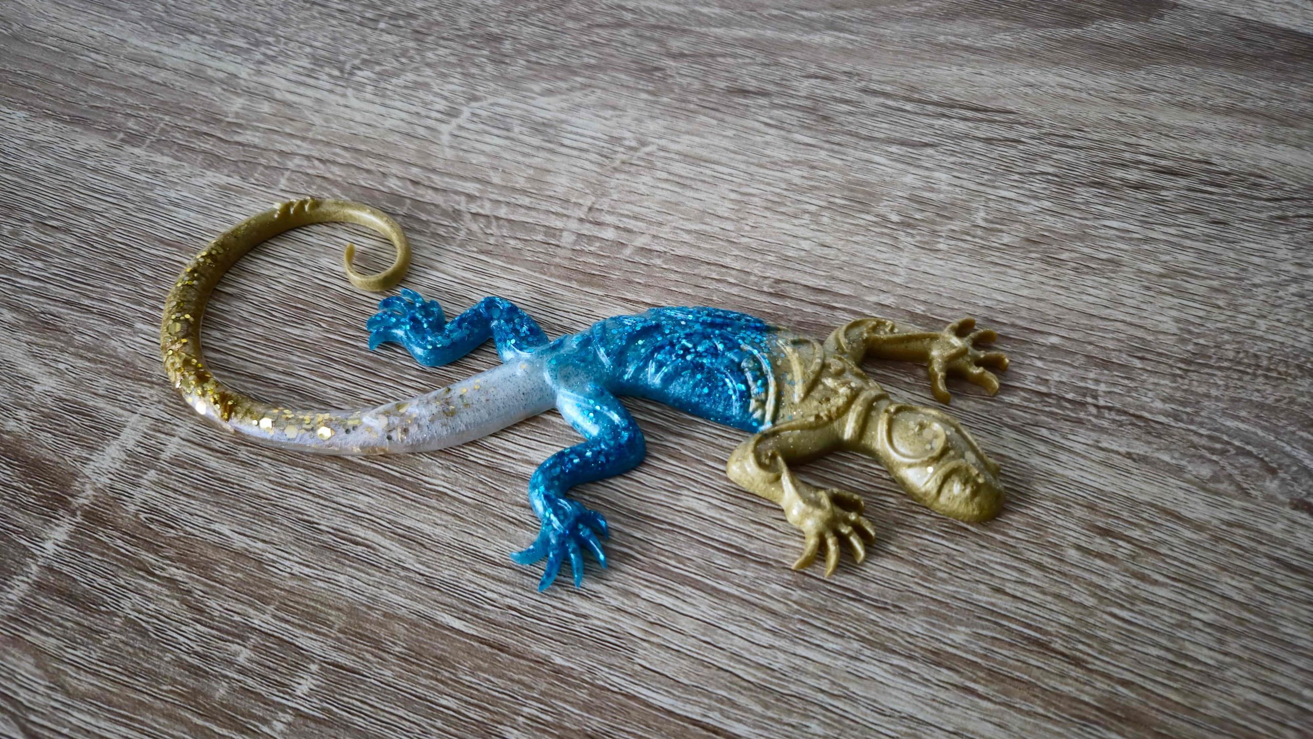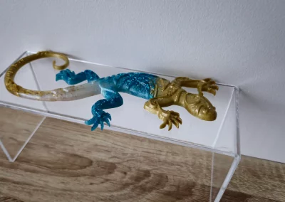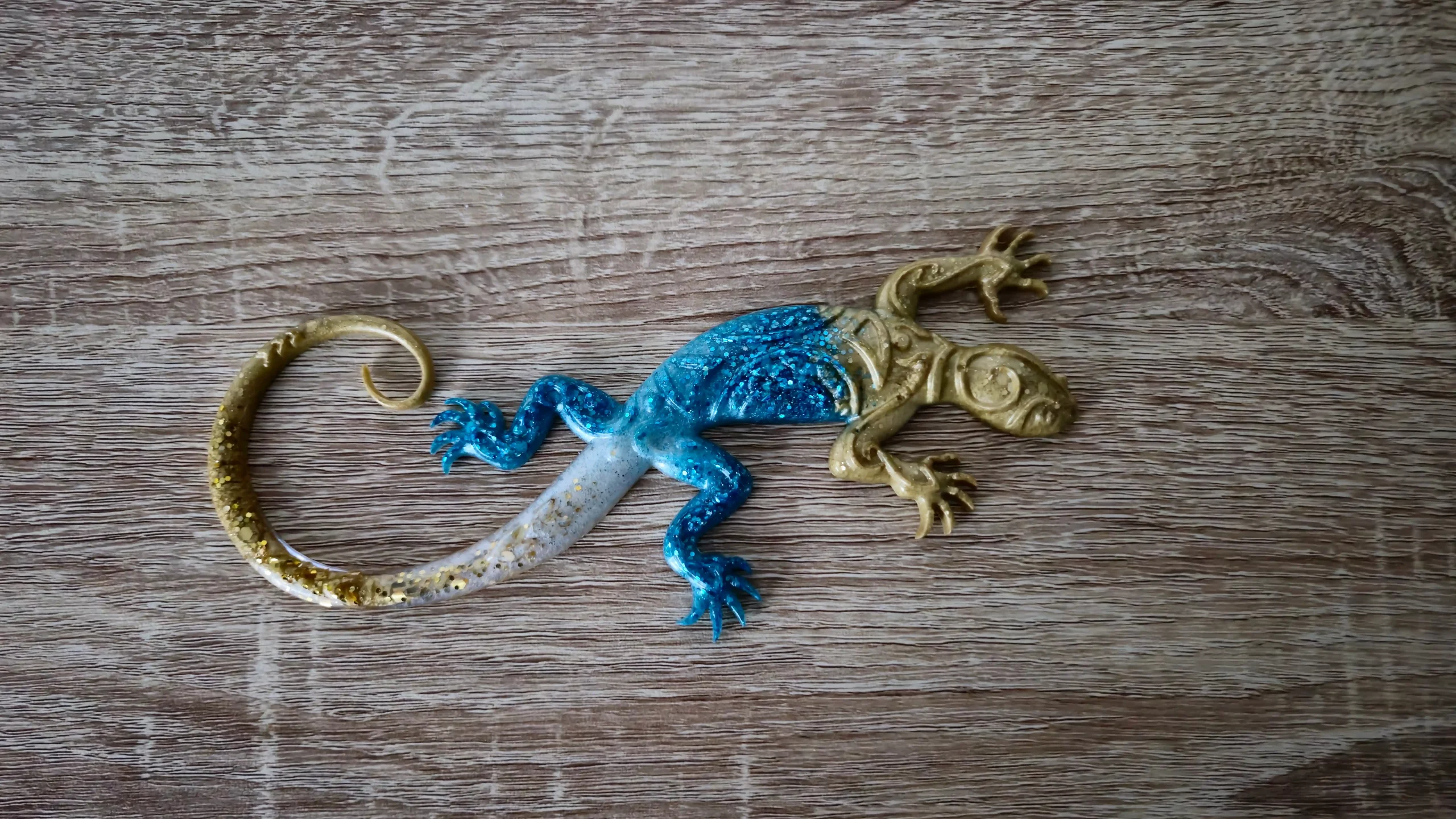 Accueil / Décorations / Salamandres / Salamandre bleue et dorée