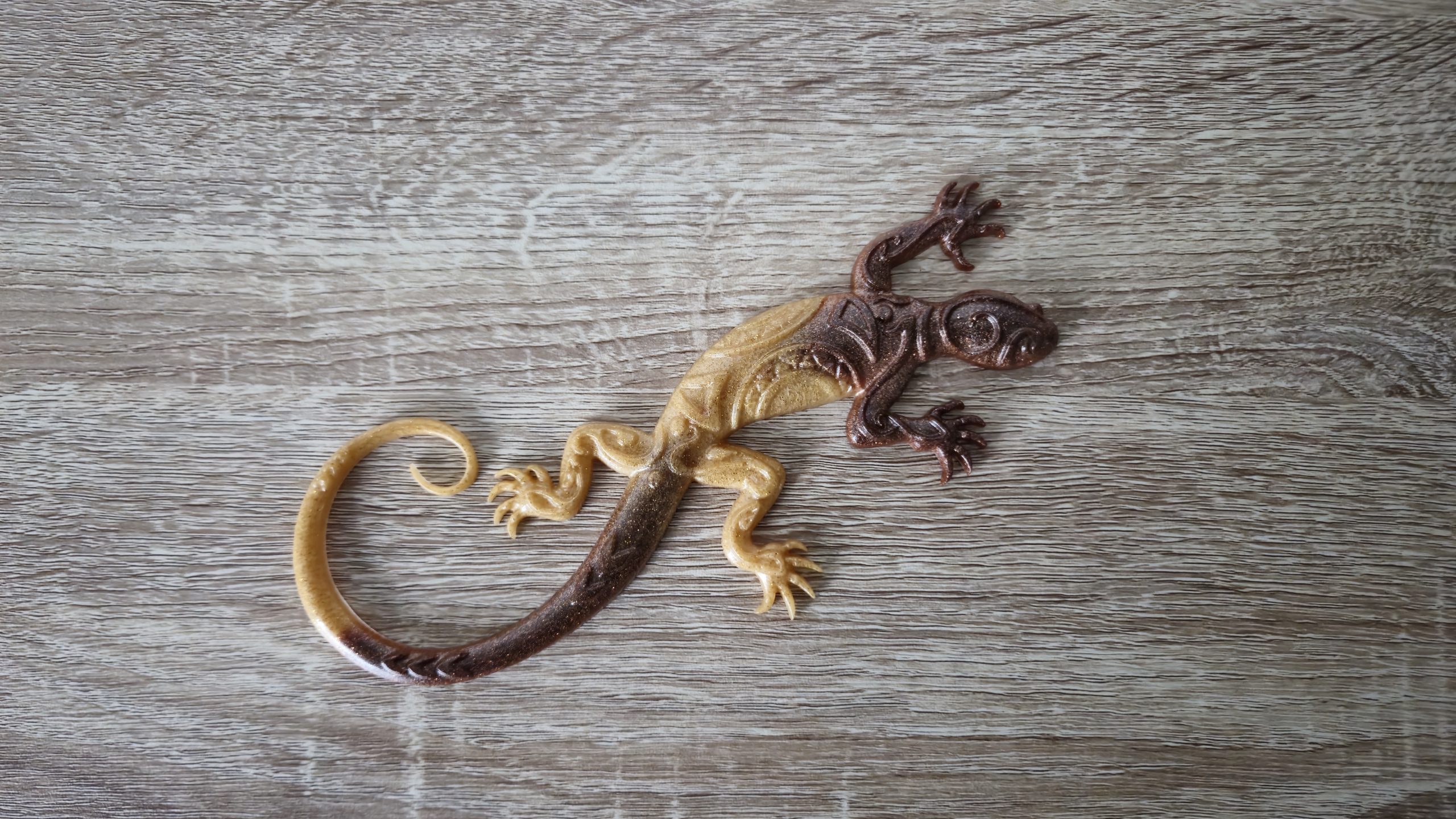Accueil / Décorations / Salamandres / Salamandre marron et dorée