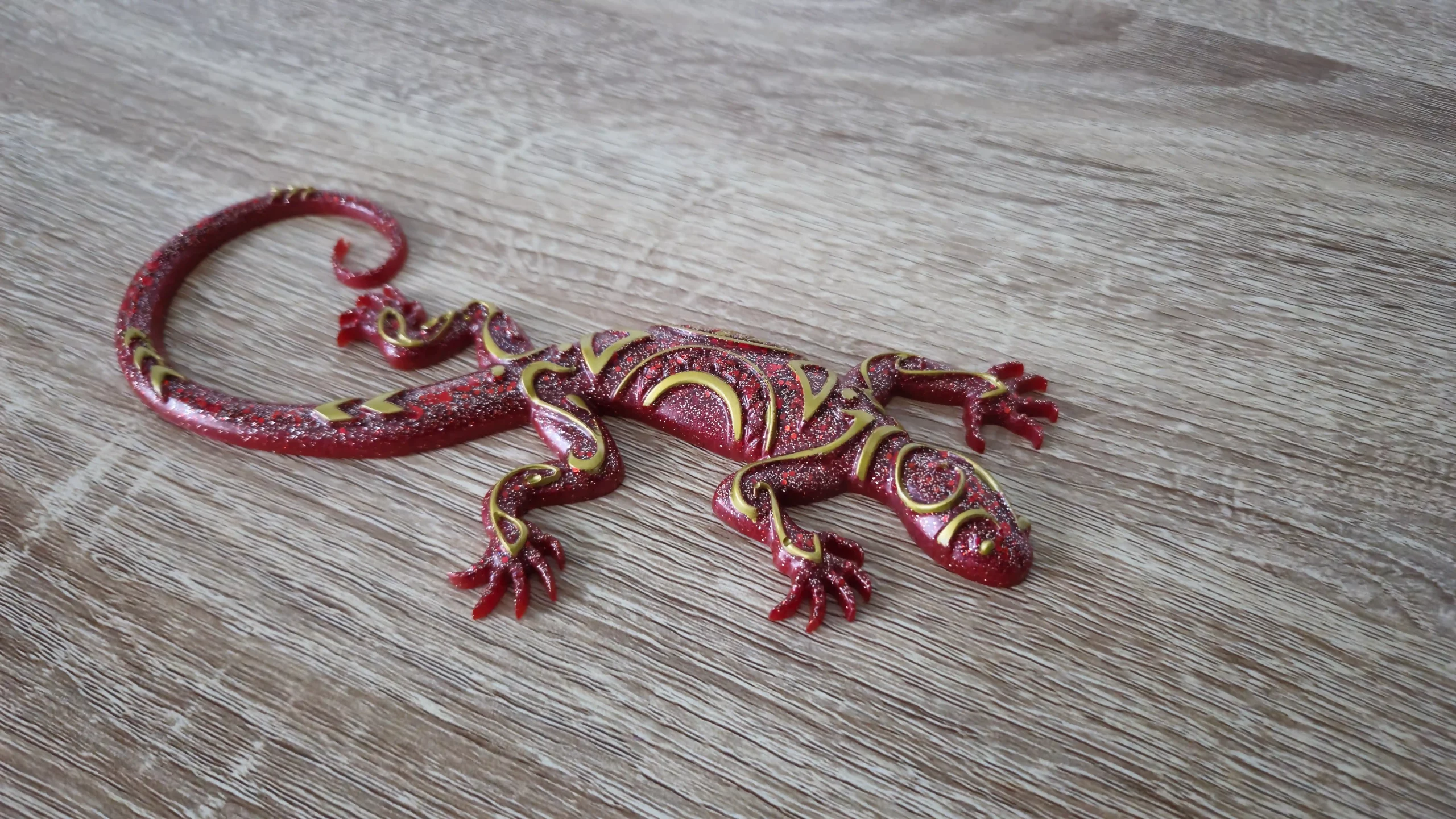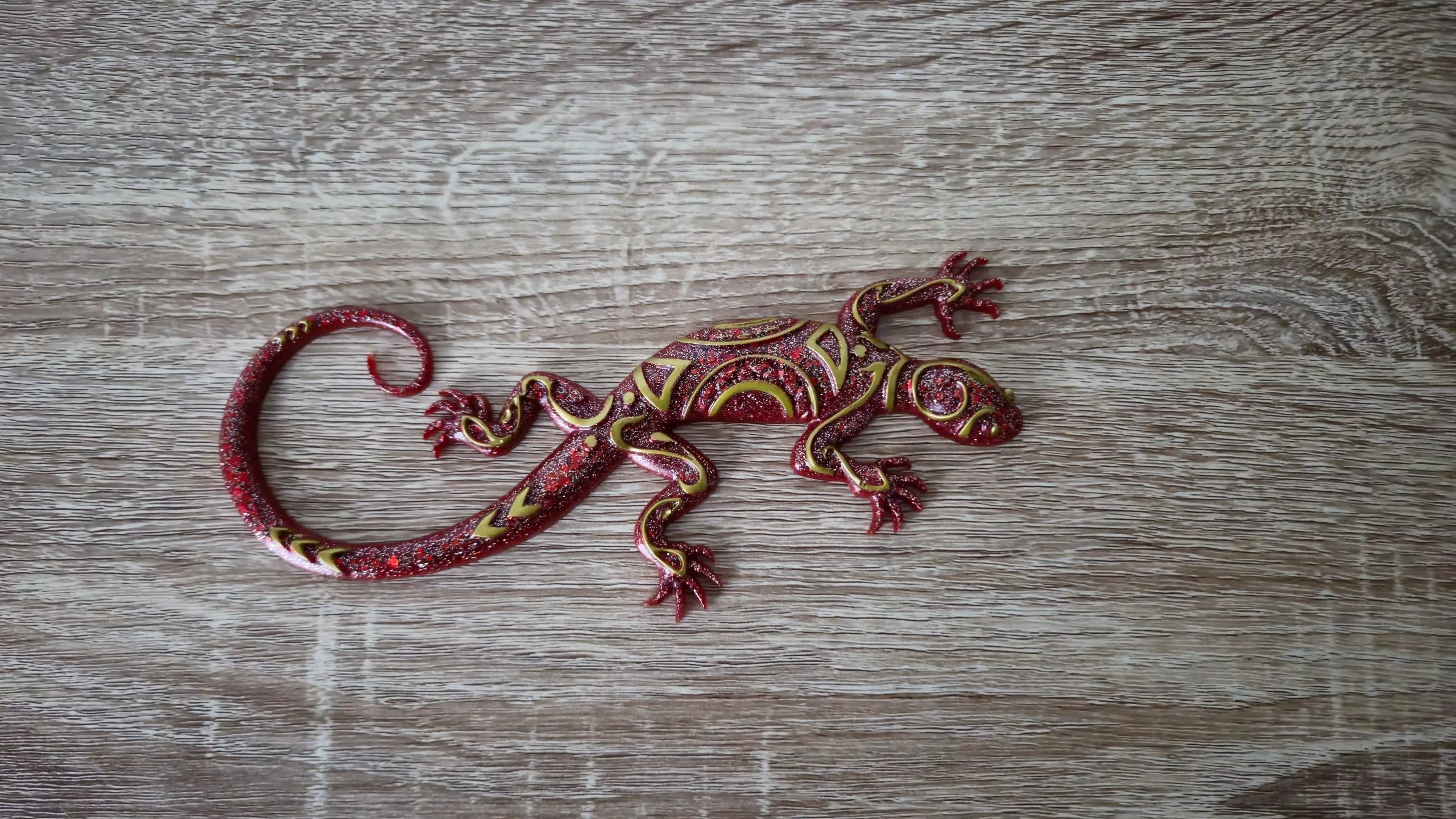 Accueil / Décorations / Salamandres / Salamandre rouge et dorée