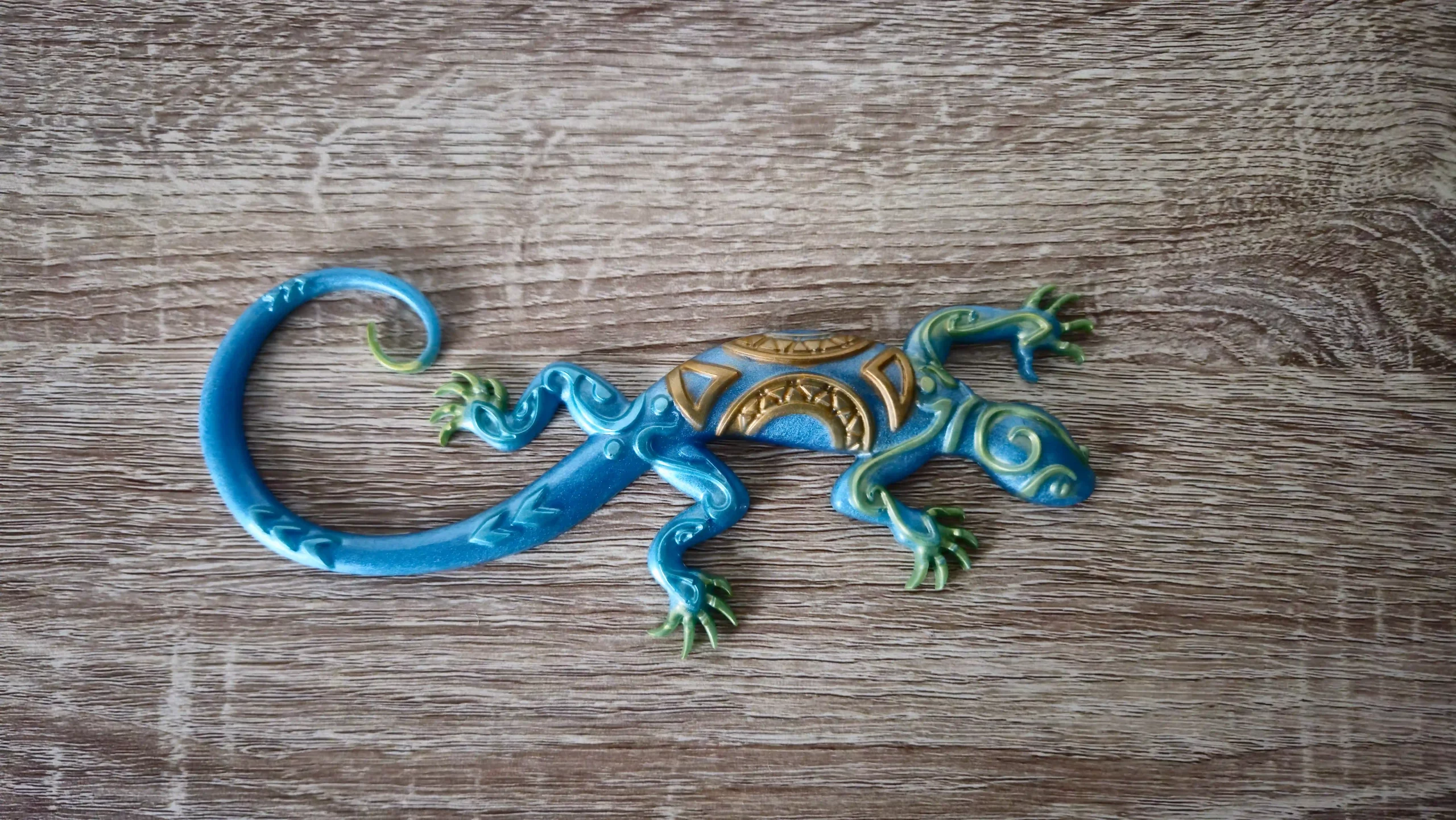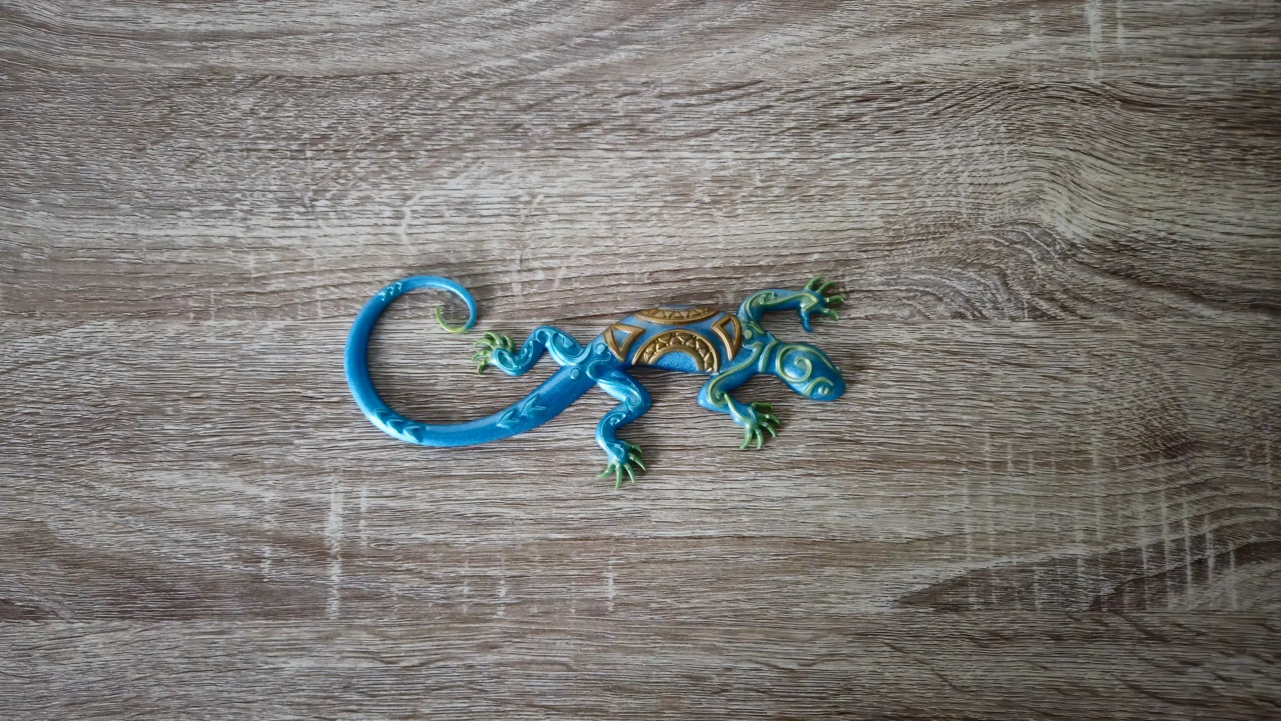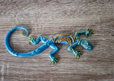 Accueil / Décorations / Salamandres / Salamandre verte, bleue et dorée