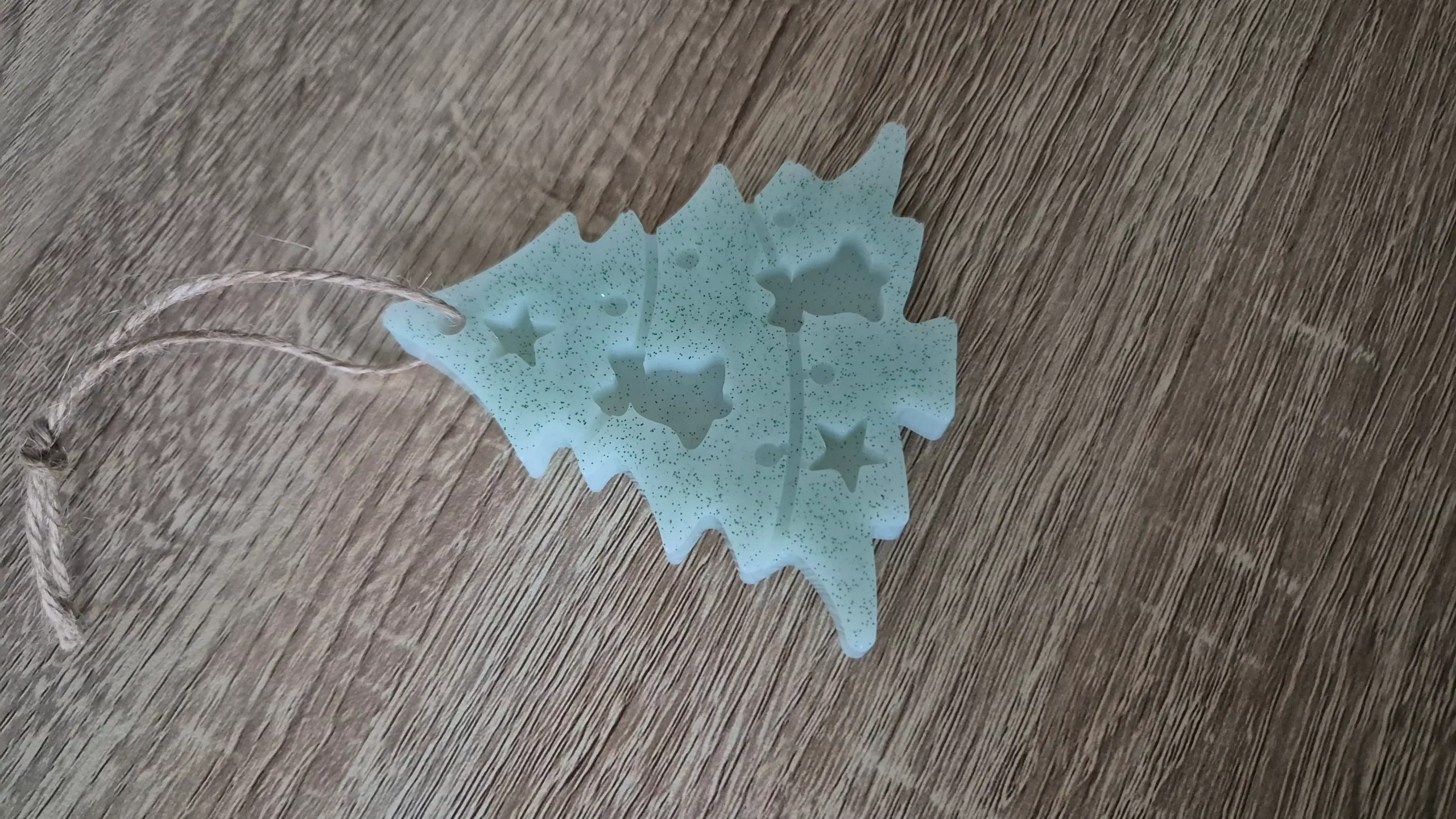 Accueil / Décorations / Décorations de Noël / Sapin blanc à paillettes vertes