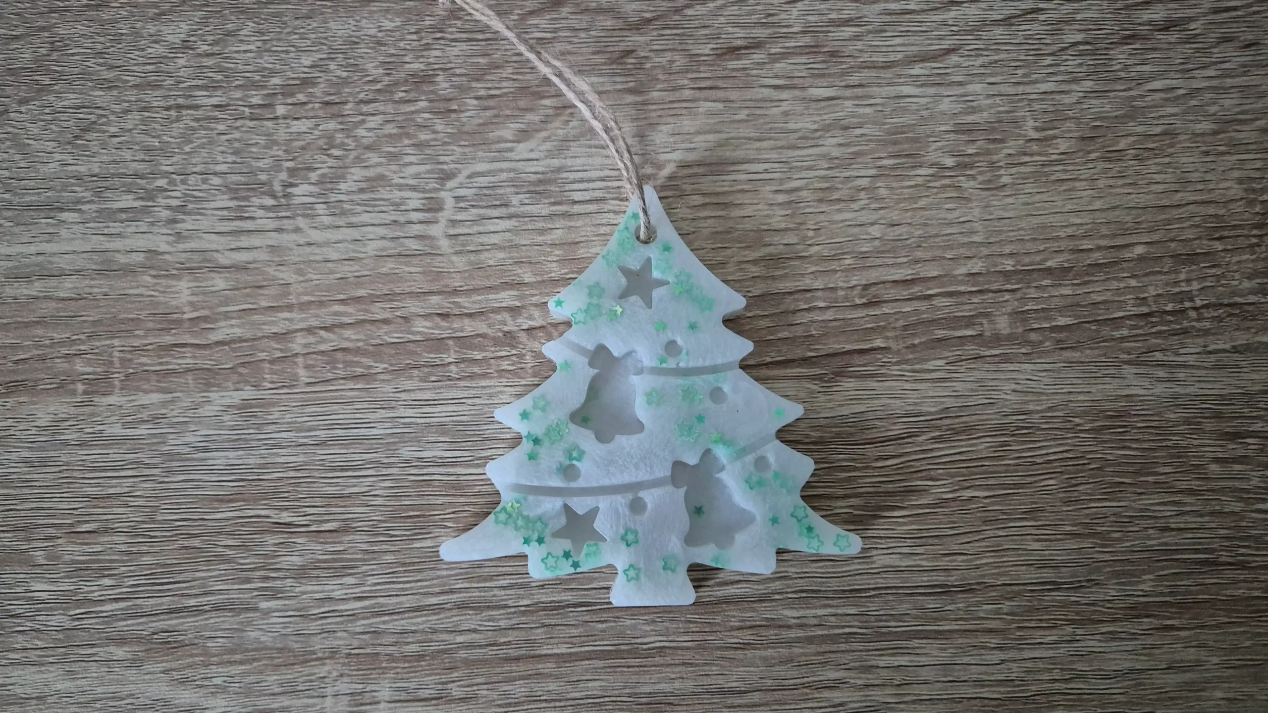 Accueil / Décorations / Décorations de Noël / Sapin blanc étoiles vertes